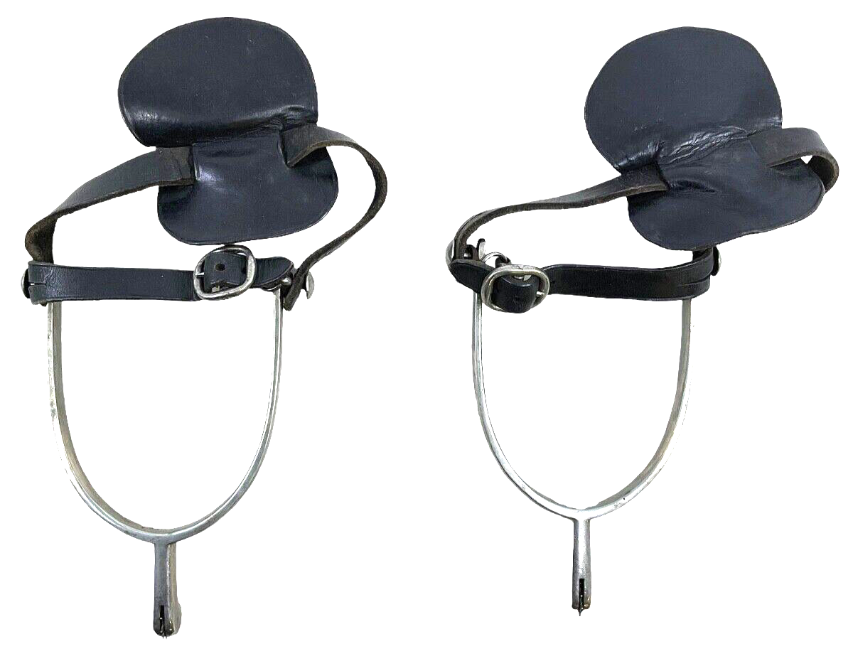 Enhance your collection with this distinguished pair of spurs, reminiscent of Canada’s storied past. These black leather strapped spurs are emblematic of either the Canadian Rifle Regiment or the Mounted Police, known for their robust history and dedication. Crafted with precision and durability in mind, the spurs are made from high-quality materials that have stood the test of time. The leather straps are supple yet strong, ensuring a secure and comfortable fit for any rider. Designed to reflect the honor and discipline of these prestigious units, the spurs are both functional and a conversation piece. Whether you are a history enthusiast, a collector of military memorabilia, or simply appreciate well-crafted equestrian gear, this pair is a remarkable find. Add a touch of historical elegance and pride to your collection with these Canadian Rifle Regiment or Mounted Police black leather strapped spurs.