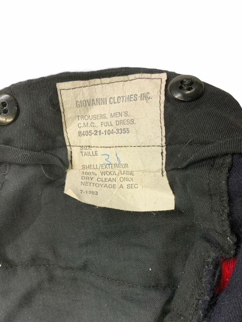 Introducing the **Canadian RMC Military College Red Piped Trousers** in size 34 waist by 29 length, a distinguished piece of military apparel with a rich heritage. These trousers are part of the esteemed Royal Military College of Canada uniform, meticulously crafted to uphold the tradition and prestige associated with the institution. The striking red piping along the seams adds a dash of classic elegance, reflecting the pride and discipline of Canadian military history. Made from high-quality, durable fabric, they ensure both comfort and longevity. Ideal for collectors, history enthusiasts, or alumni, these trousers are not just a garment but a piece of Canadian legacy. Whether for display or reenactment, they offer a tangible connection to the respected traditions of the Royal Military College.