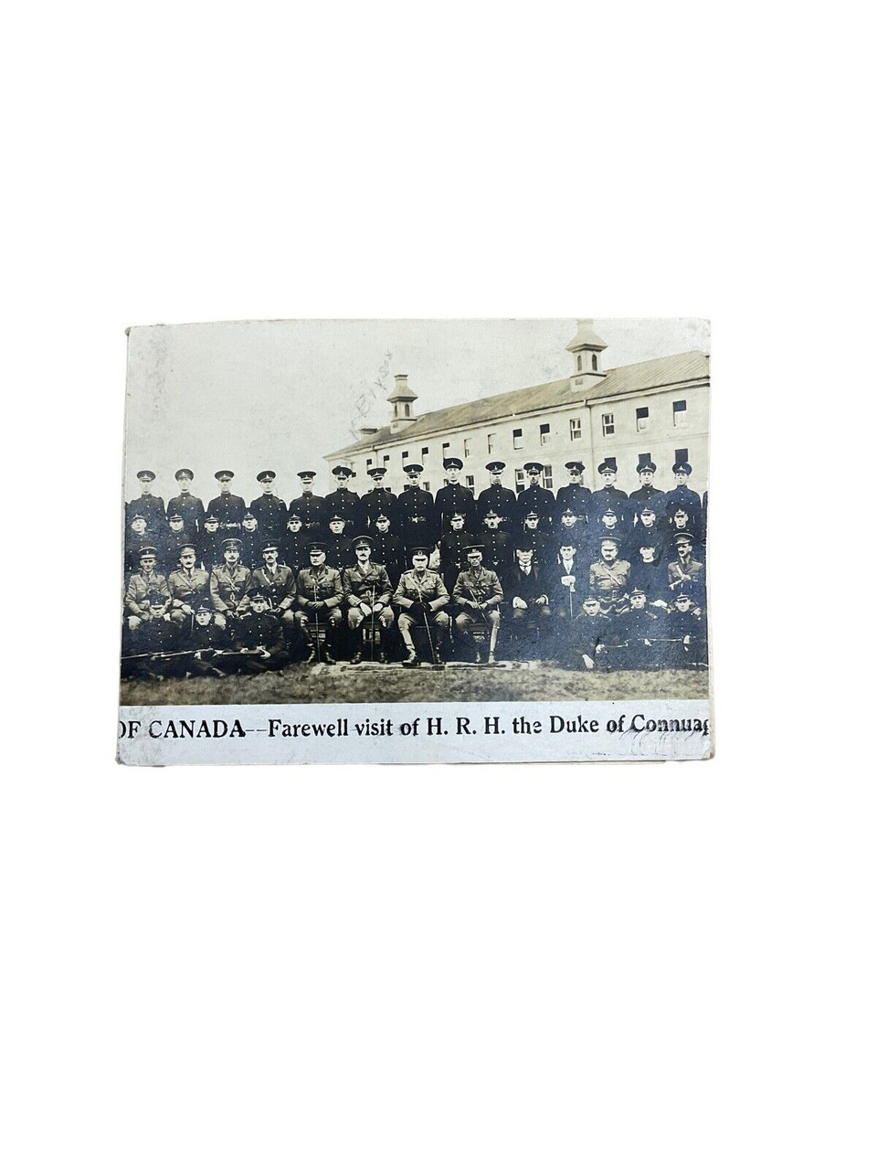 This unique and historical piece captures an authentic group photograph associated with the Royal Military College of Canada, featuring the Duke of Connaught. Measuring 13 x 3.5 inches, this vintage snapshot offers a glimpse into the military heritage and ceremonial traditions of the time. The photograph likely dates back to an era when the Duke of Connaught served as Governor General of Canada, adding layers of significance and prestige. The detailed image serves as a perfect addition for historians, collectors, and enthusiasts of Canadian military history. The photograph’s dimensions make it an ideal piece for framing, ensuring it can be proudly displayed in any collection or exhibition. It’s an evocative reminder of the enduring legacy of the Royal Military College and its notable associations.