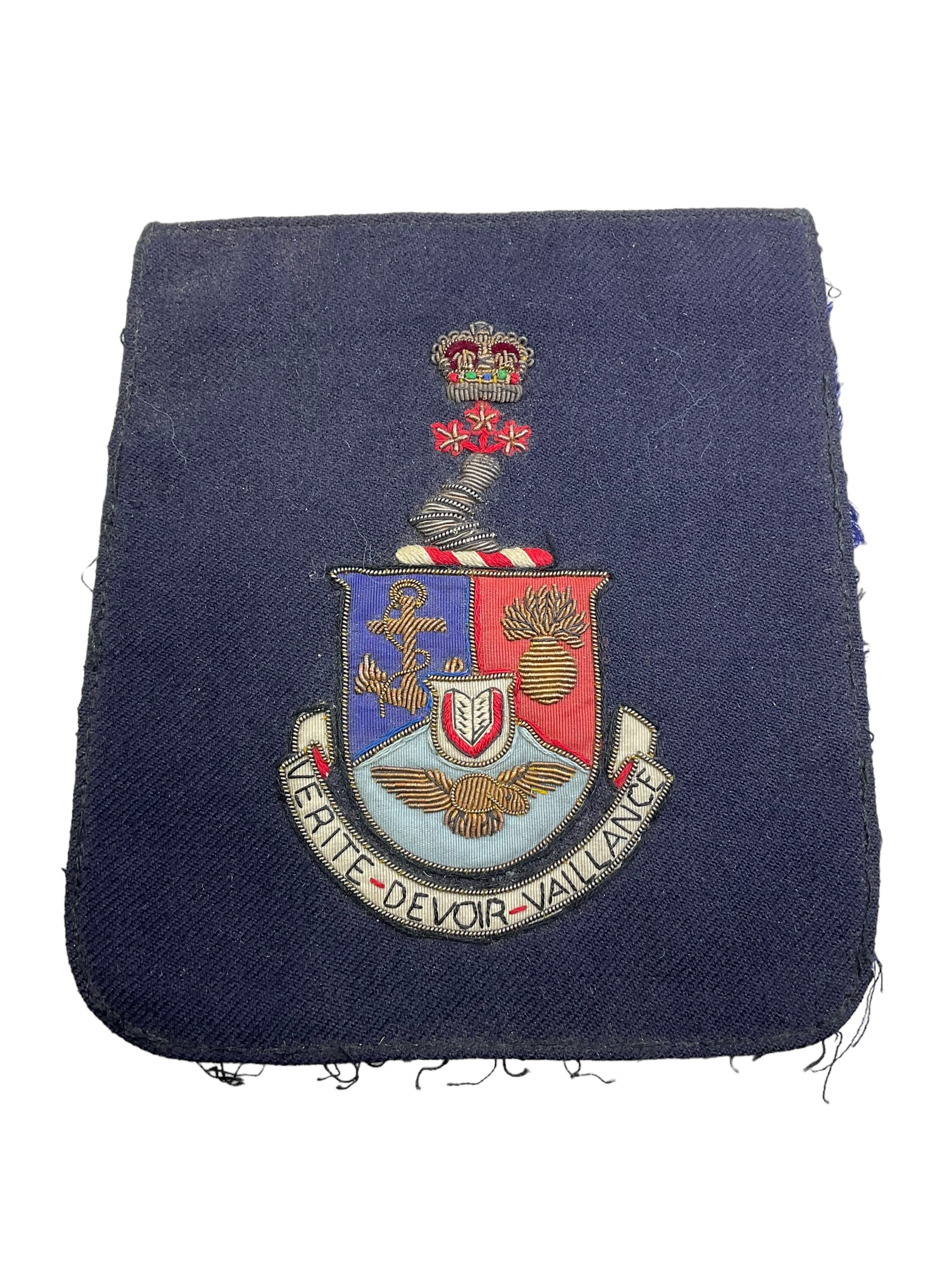 The Canadian Royal Military College French CMR Blazer Crest Patch is an emblematic insignia representing the prestigious heritage of the Collège militaire royal du Canada (CMR) in its French tradition. This intricately crafted patch features the official crest, embodying symbols of honor, leadership, and military excellence. Designed to be affixed on a blazer, it comprises detailed embroidery using vibrant threads, highlighting elements such as the proud maple leaf, crossed swords, and the college’s motto in Latin, which translate to “Truth, Duty, Valor.” This patch is not only a significant part of the military regalia but also a distinguished keepsake for graduates and members associated with the institution. It reflects the rich history and bilingual culture of the Canadian military education system, making it a treasured item for collectors, alumni, and enthusiasts alike.