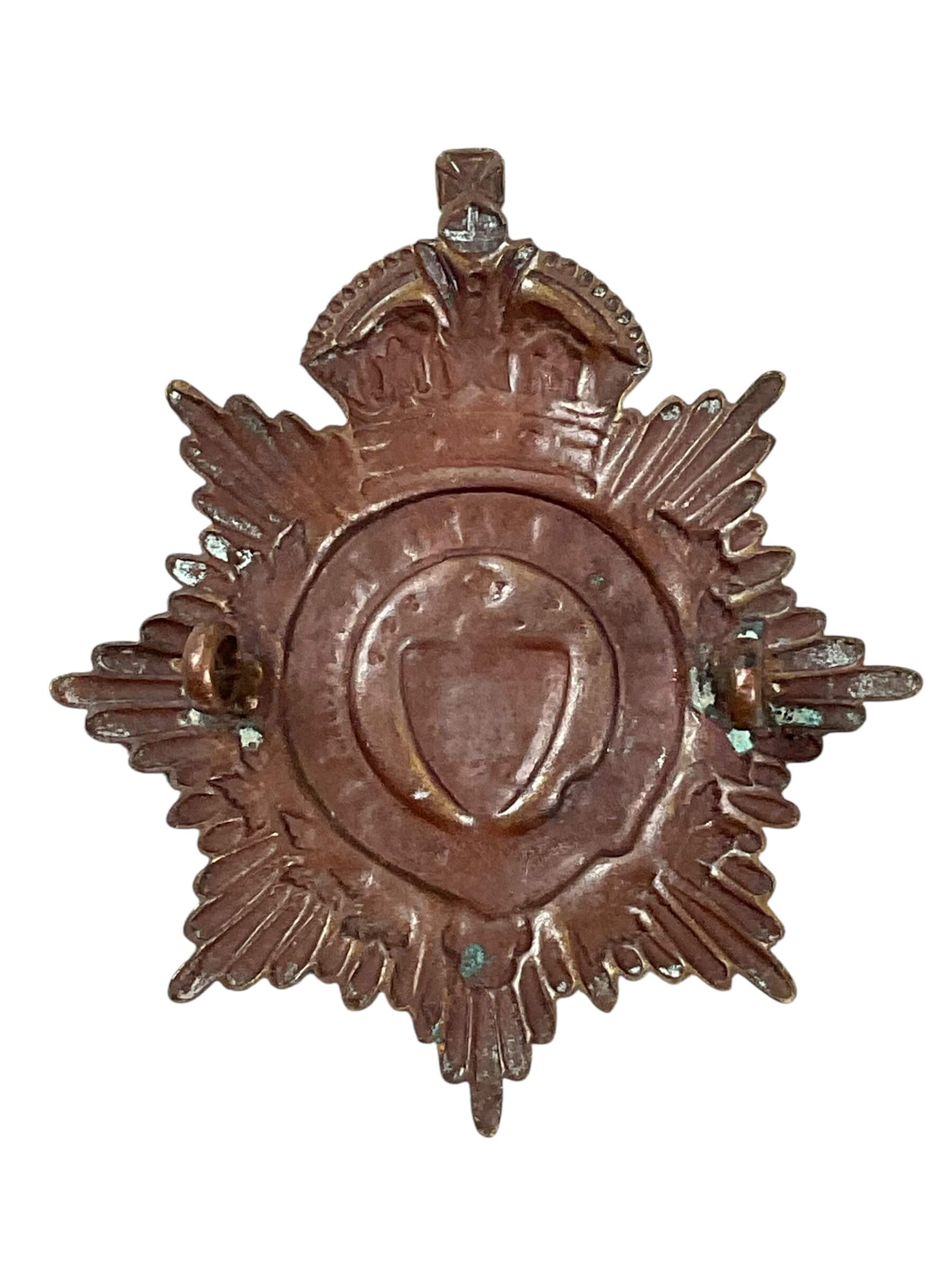 The Canadian Sault Ste Marie Regiment Cap Badge is a military insignia associated with the Sault Ste Marie Regiment, a Canadian infantry unit. The badge is typically constructed from brass or white metal and features the regimental motif, which commonly includes a beaver atop a maple leaf, symbolizing Canada. Inscribed banners denote the regiment’s name and affiliation. Cap badges of this type were worn on the service dress headdress by soldiers, identifying both unit and esprit de corps. The Sault Ste Marie Regiment originated in 1913 and holds a historical place within the Canadian Militia, later part of the Canadian Army. Badges like this one serve as artifacts reflecting the military heritage and traditions observed by members during the early to mid-20th century. Collectors and historians often value these items for their craftsmanship and role in regiment identification. The condition, maker’s mark, and original mounting hardware can vary with each example.