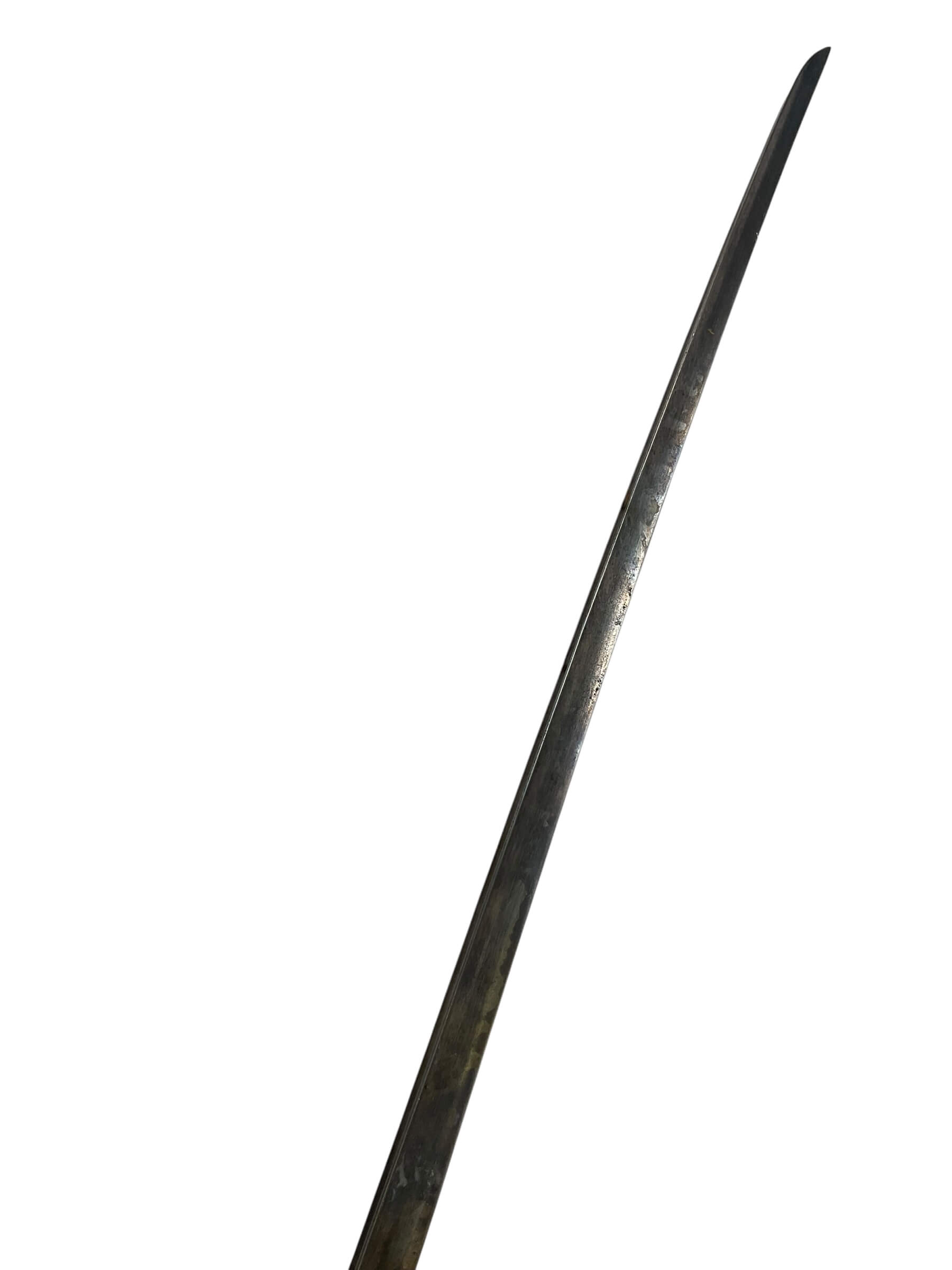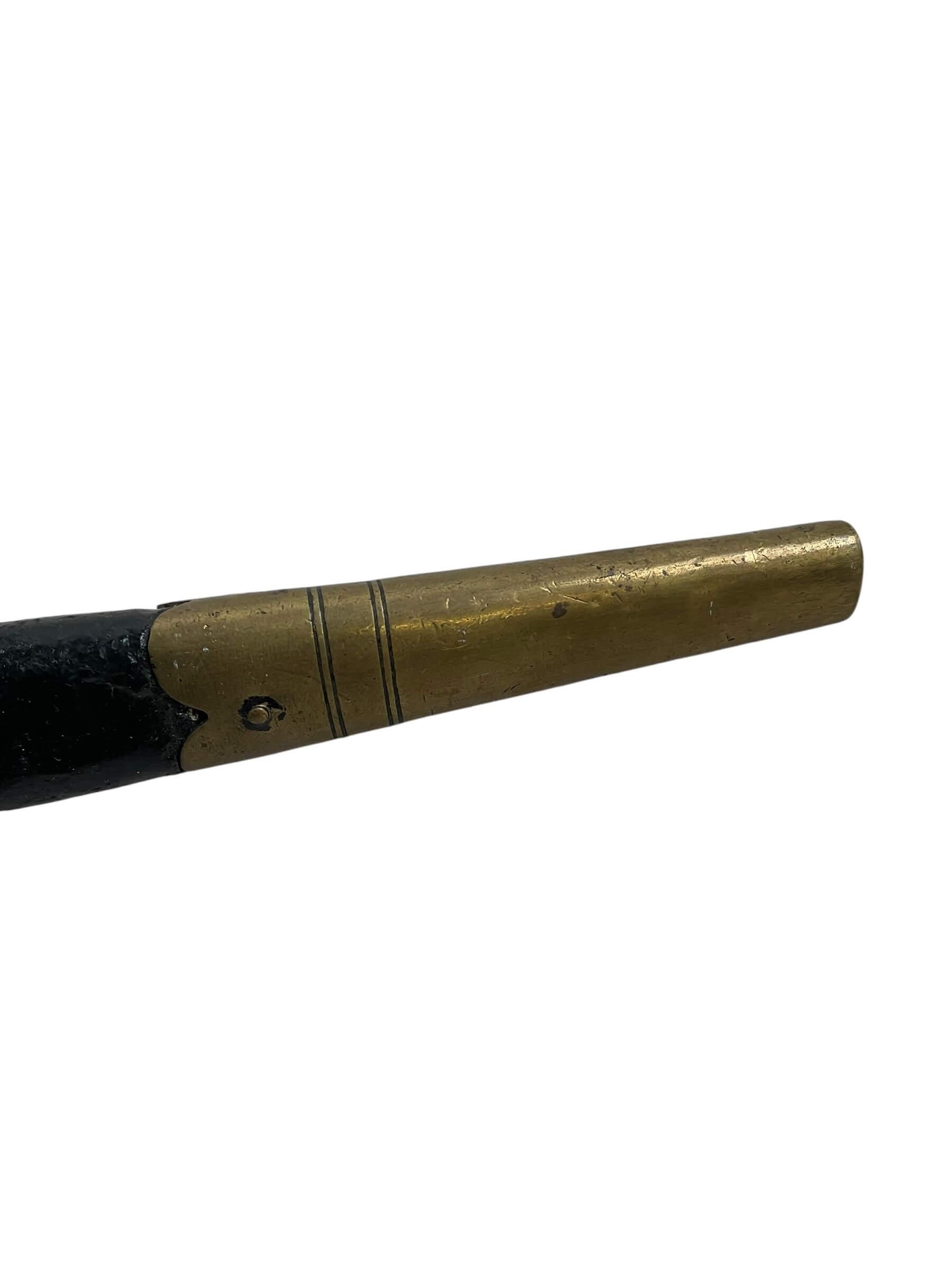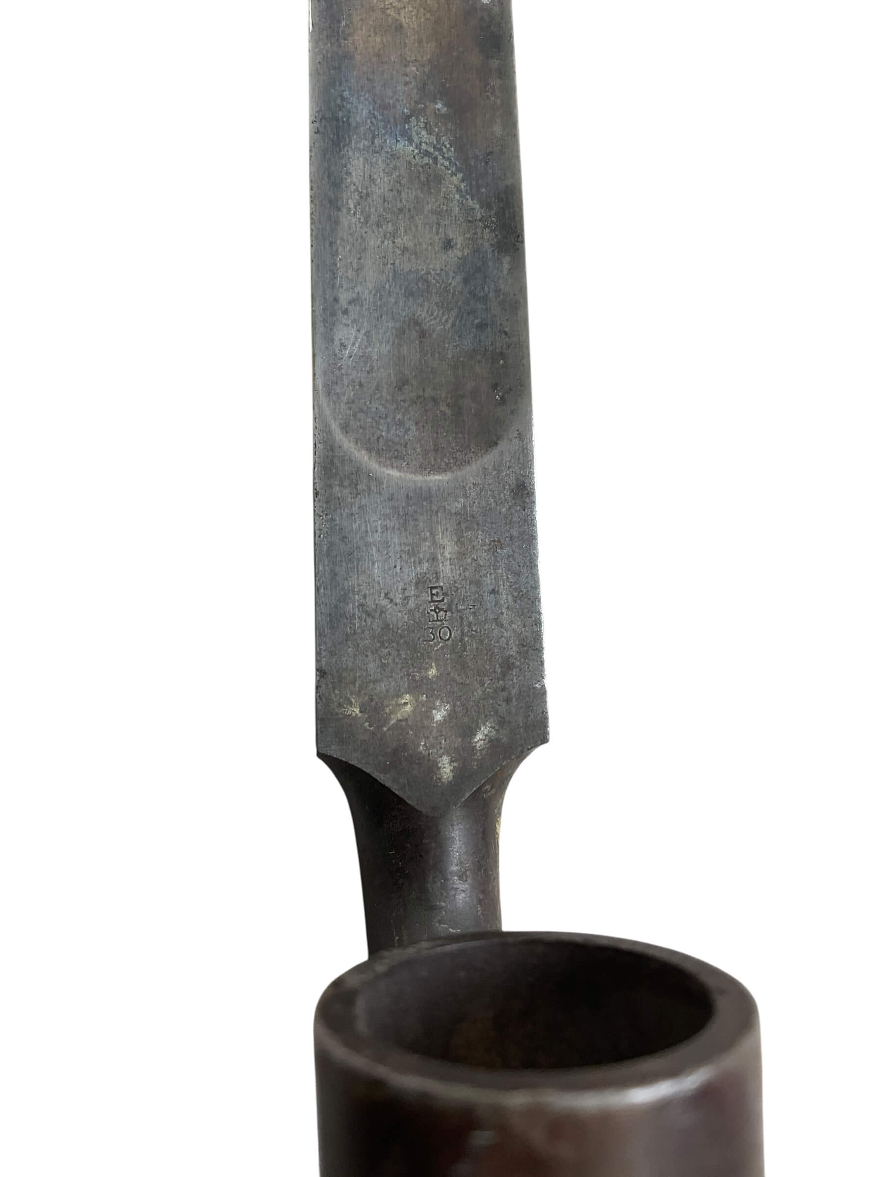 This title refers to an authentic artifact, the Canadian Snider Enfield Bayonet, which is an integral part of military history. This specific item is unit marked for the 33 Regiment, denoting its historical significance and connection to a specific military group. The bayonet is designed to fit a Snider-Enfield rifle, a type of firearm widely used in the late 19th century. It is a symbol of craftsmanship, featuring a robust blade and a sturdy handle for secure grip. The bayonet comes with its original scabbard, adding to its value as a collectible item. Both the bayonet and the scabbard show signs of usage, further authenticating their historical origin. This Canadian Snider Enfield Bayonet is a must-have for collectors interested in military memorabilia, particularly those focusing on Canadian history.