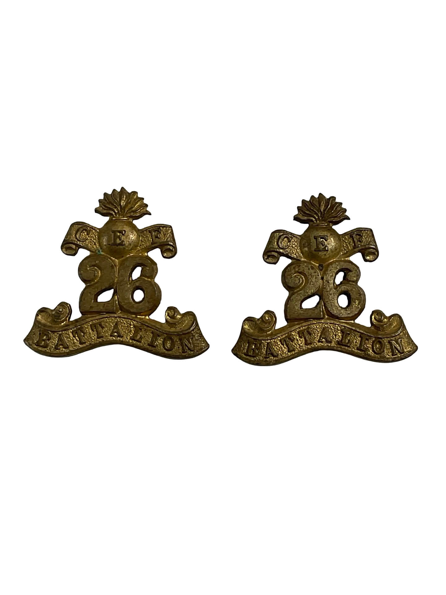 The Canadian St. John New Brunswick Fusiliers Collars Insignia Pair comprises two matching collar badges issued to members of the St. John Fusiliers, a historic Canadian infantry regiment based in Saint John, New Brunswick. Each insignia is typically crafted in metal and features the distinct regimental emblem, which may include identifying motifs such as the regiment’s name, symbols associated with New Brunswick, or traditional fusilier elements. Collar badges were worn on the uniform to denote regimental affiliation and were an essential aspect of Canadian military dress during the early to mid-20th century. The St. John Fusiliers were active in various organizational forms from their establishment in the late 19th century through amalgamation with other units. This paired insignia provides material evidence of the regiment’s history and contributions. Such items are of interest to collectors of Canadian military artifacts, researchers, and those studying the evolution of military insignia.