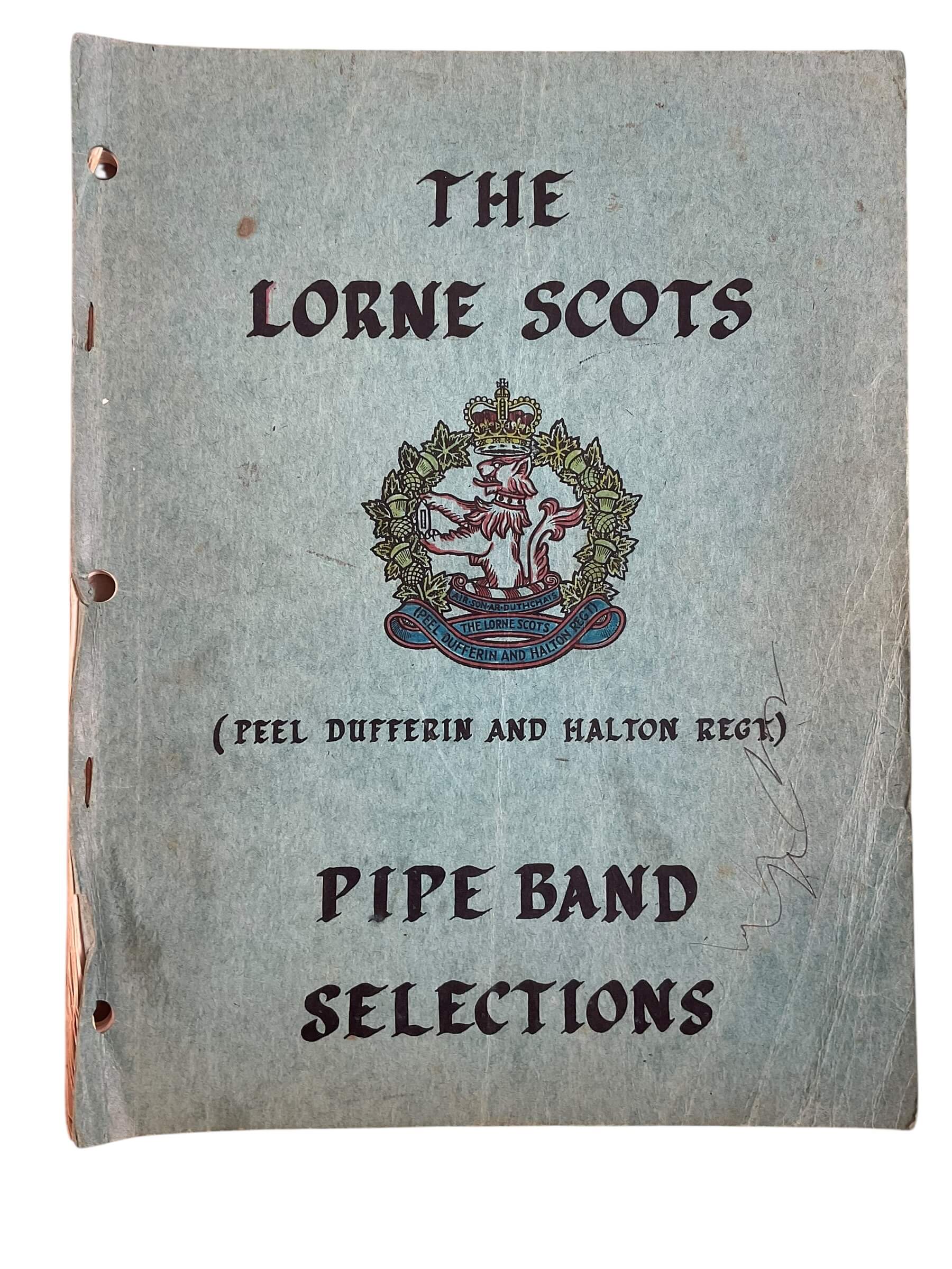 **Canadian The Lorne Scots Pipe Band Selections Used Softcover Reference Book** This softcover reference book compiles musical selections associated with The Lorne Scots Pipe Band, a unit with longstanding ties to the Canadian military. The publication contains notated arrangements, likely intended for instructional or archival use within military, band, or historical research contexts. The contents focus on the specific repertoires, drills, or arrangements performed by The Lorne Scots, offering insight into regimental music traditions in Canada. The book is presented in softcover format and bears indications of prior use, such as minor wear or handling marks. It serves as a source of information on military pipe band practices, supplementing collections of military, music, or Canadian regimental history. This edition provides reference material for those studying or documenting the evolution and function of pipe bands within the broader framework of Canadian military heritage. No revisions, supplementary materials, or digital resources are included with this used copy.  Total of 46 pages.