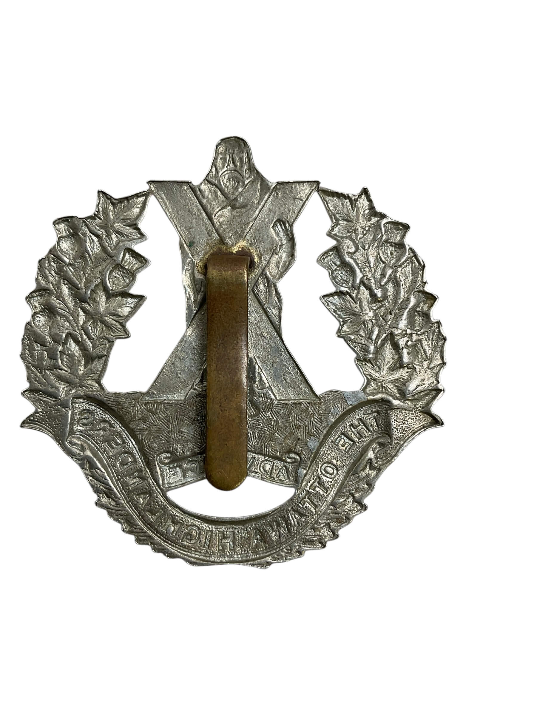 The ‘Canadian The Ottawa Highlanders Cap Badge’ is a unique emblem of honor, heritage, and pride, associated with the Ottawa Highlanders, one of Canada’s prestigious military regiments. This badge is typically worn on the regiment’s traditional headwear, symbolizing their distinct identity and valor. The design of the badge beautifully incorporates key symbols of Canada and the Highlanders’ Scottish roots, including the Canadian Maple Leaf and the Scottish Thistle. It is often made with durable materials like brass or silver, ensuring its longevity. The badge represents not only the rich history and traditions of the Ottawa Highlanders but also the broader spirit of loyalty, courage, and unity within the Canadian military. It is a cherished item among collectors of military memorabilia, historians, and those who have a deep respect for the Canadian Armed Forces.