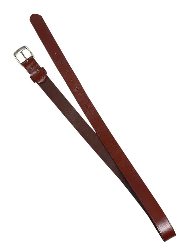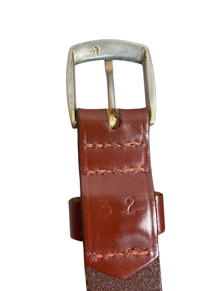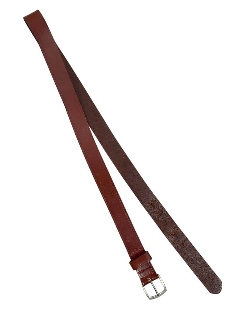 This item is an original Canadian Women’s Army Corps (CWAC) leather belt, dating from the Korean War period. The belt is sized Small and constructed from brown leather, featuring a metal buckle with adjustment holes for a secure fit. CWAC belts formed part of the standard-issue dress and service uniform for women who served in the Canadian Army during the Korean War era (early 1950s