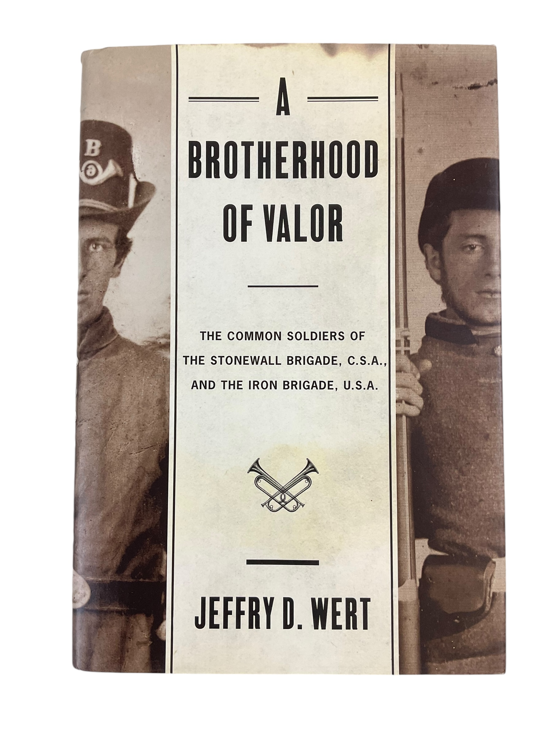 A hard cover used condition Brotherhood Of Valor The Common Soldiers Of The Stonewall Brigade CSA And The Iron Brigade USA Reference Book with a total of 419 pages. Contains information and a few period photos of the US Civil War. This edition was published in 1999.