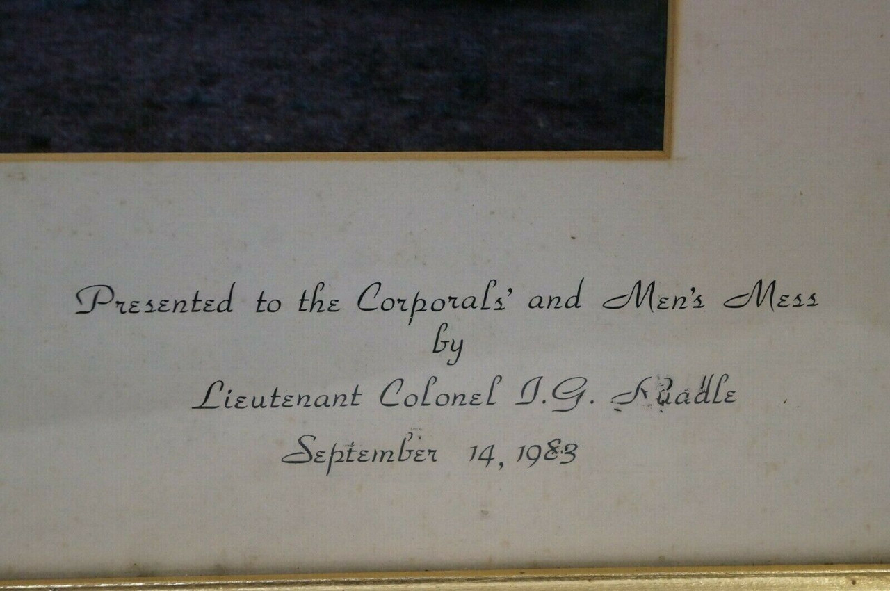 This exceptional piece, titled ‘Cold War Canadian Argyll & Sutherland Highlanders Framed Group Photograph 1983’, showcases a striking visual from a pivotal period in history. Capturing the camaraderie and esprit de corps of the Argyll & Sutherland Highlanders, this enlarged and meticulously framed group photograph measures roughly 24 x 21 inches. Embodying the honorific spirit with “Ducimus” (Latin for ‘We lead’), it is a testament to the regiment’s distinguished service during the Cold War era. This photograph was thoughtfully presented to the Mess of the Argyll & Sutherland Highlanders, marking it as a piece of historical and sentimental significance. Ideal for military historians, collectors, or those with a deep appreciation for Canada’s storied military past, this framed photograph not only preserves a moment in time but also celebrates the enduring legacy of the Highlanders.