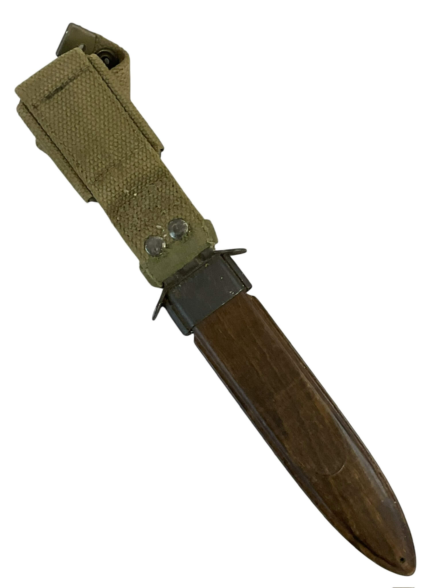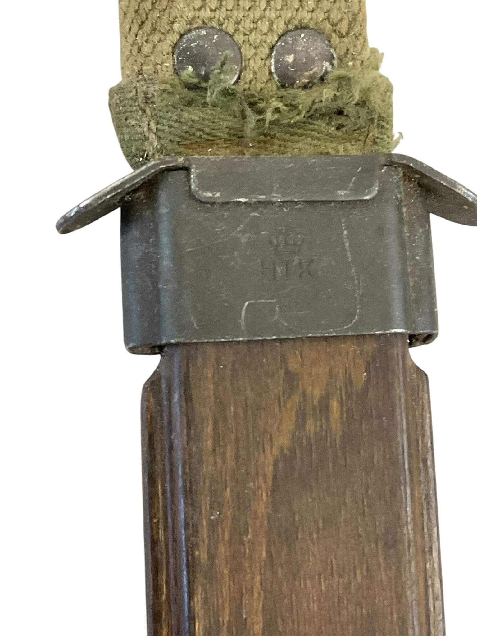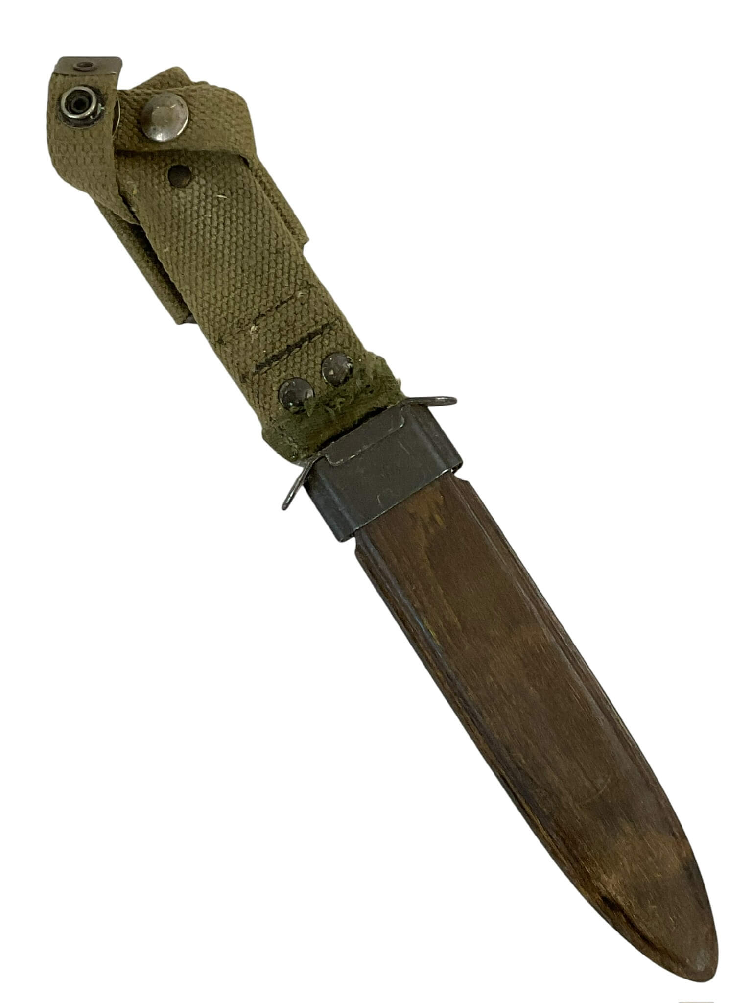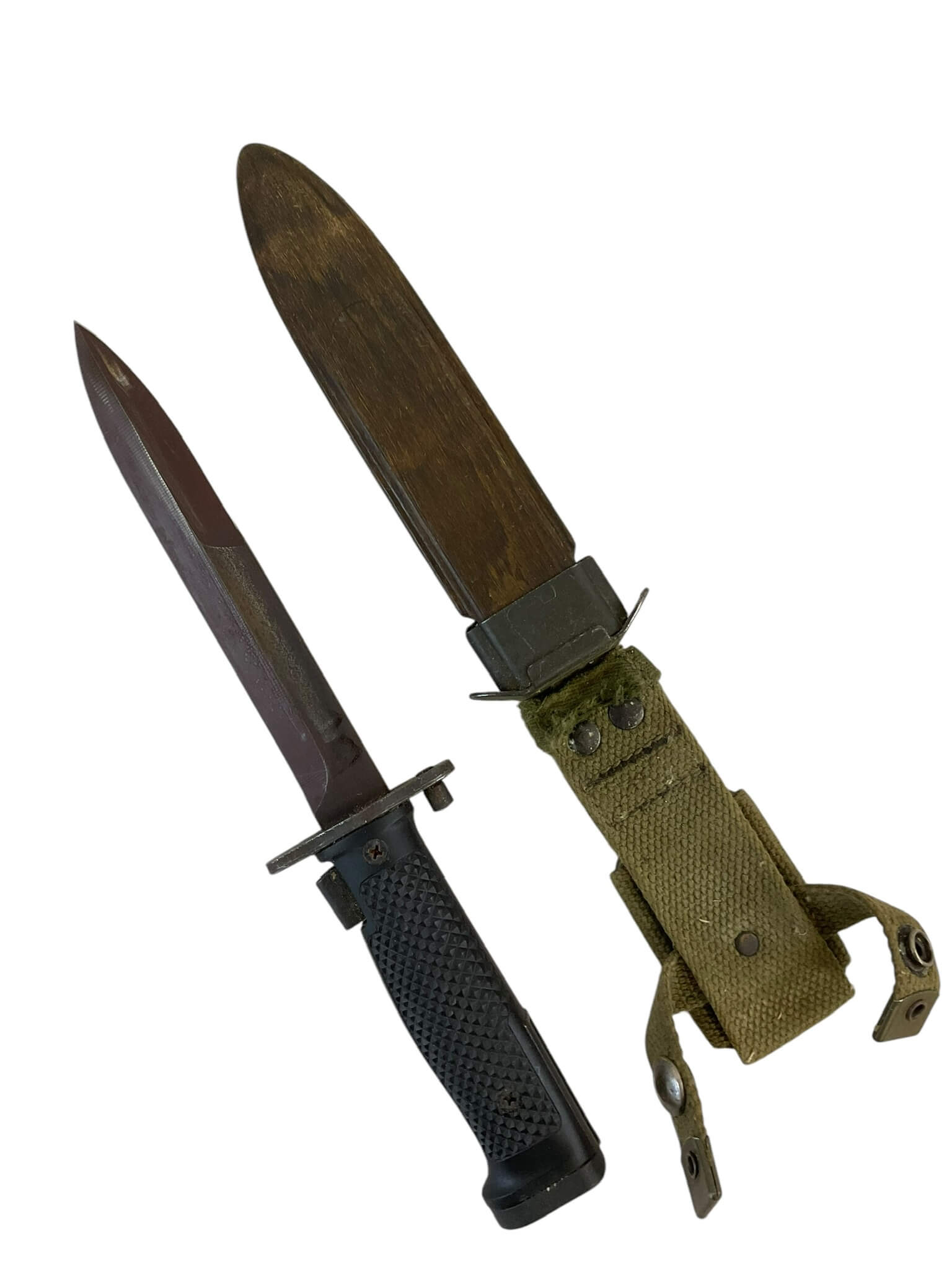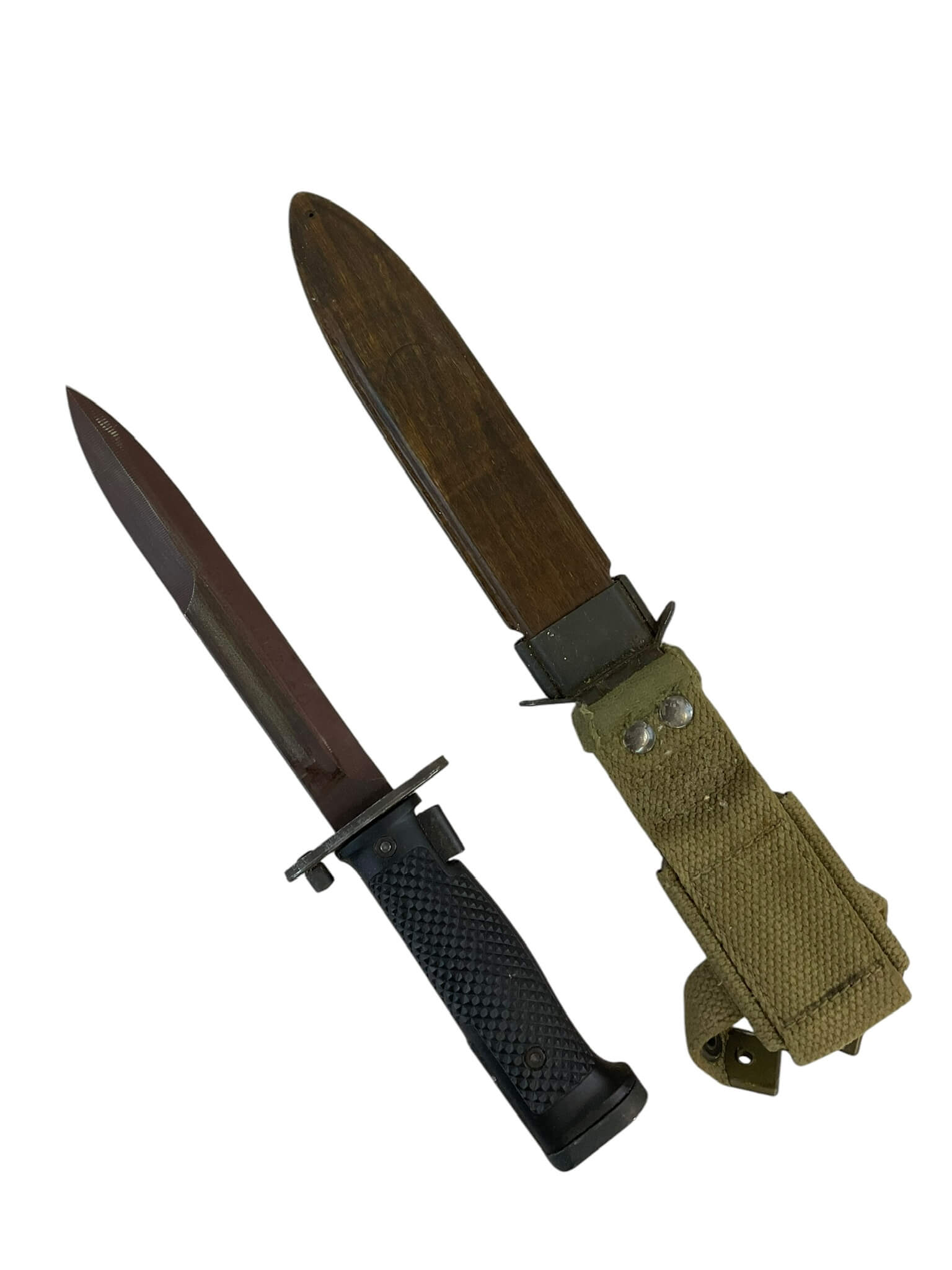 This is an exceptional piece of military history: a Danish Army M1 Garand M5 Bayonet with Scabbard. Used by the Danish forces during the mid-20th century, this bayonet is an authentic piece of military memorabilia. The M1 Garand M5 bayonet is a unique variant, designed with a 6 ¾-inch blade, an overall length of 11 ½ inches, and fits only the M1 Garand Rifle. It is meticulously crafted from high-quality steel, ensuring durability and long-lasting sharpness. The scabbard, designed to house the bayonet, is also included. It’s made from sturdy material, providing secure and safe storage for the blade. This bayonet and its accompanying scabbard are perfect for military enthusiasts, history buffs or collectors seeking a unique addition to their collection.