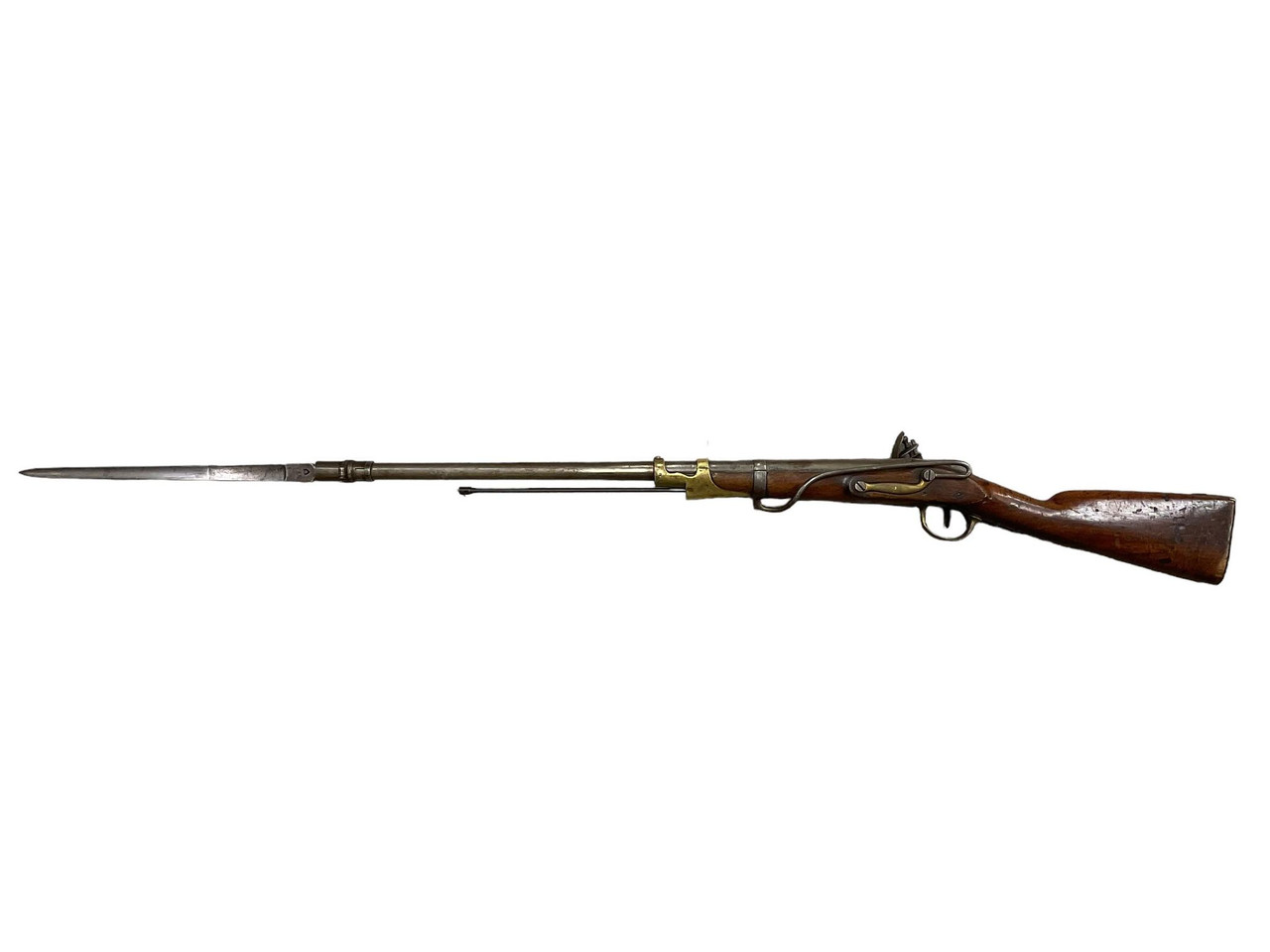 The Dutch Napoleonic Era Mounted Artillery Cavalry Carbine is a firearm that embodies the turbulent times of European conflict. This carbine, equipped with a bayonet, served as a tool for both ranged and close-quarters combat within Dutch mounted artillery and cavalry units.