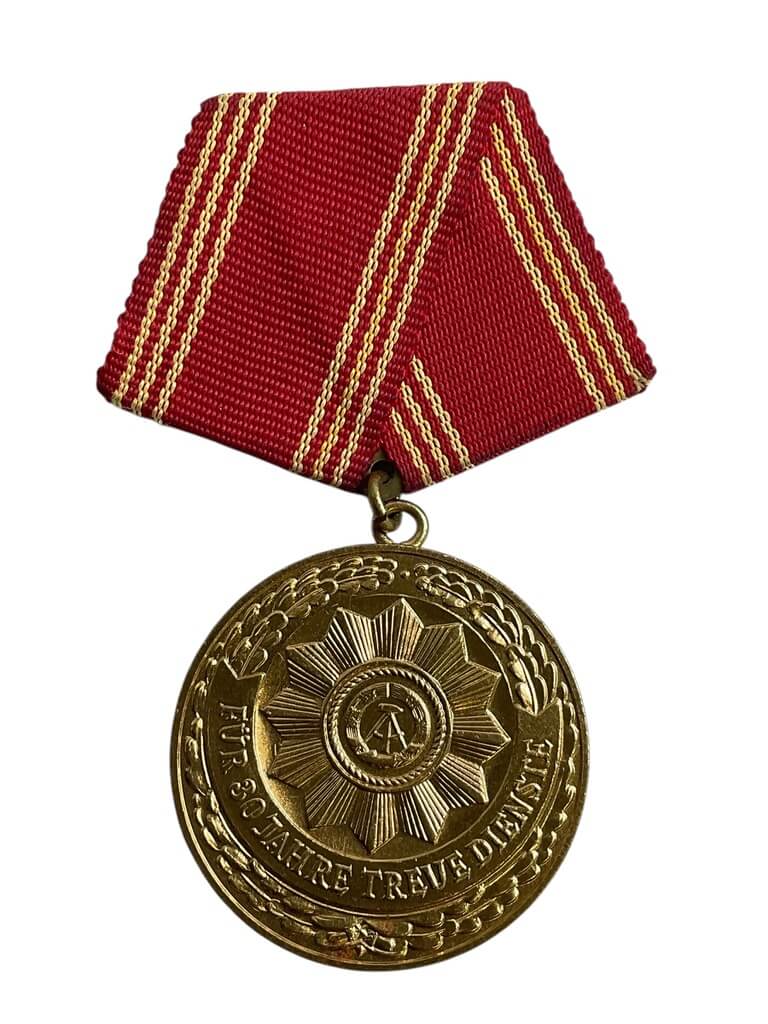 The ‘East German 30 Year Service Medal Full Size’ is a prestigious commemoration piece that hails from the former German Democratic Republic (GDR). This medal, typically crafted from quality materials, is a testament to the longevity and dedication of its recipients. The face of the medal often features emblematic insignia associated with the GDR, such as the symbolic hammer and compass, encased within a wreath. The reverse side generally includes the inscription ‘For loyal service’, followed by the number ’30’, indicating the years of service. Its full size makes it a prominent addition to any collection, bearing historical significance and a sense of pride. This medal is not only a symbol of personal achievement and commitment but also a tangible remnant of East German history. It provides a connection to the past, making it a valuable piece for historians, collectors, and those with a vested interest in the GDR.