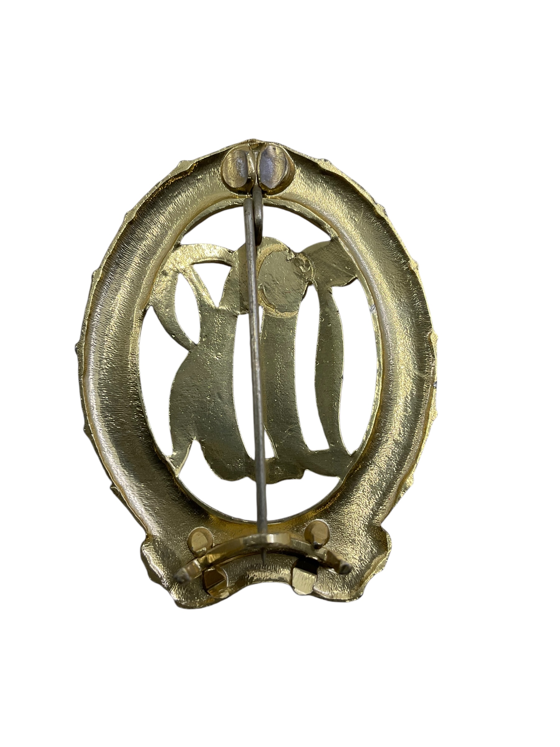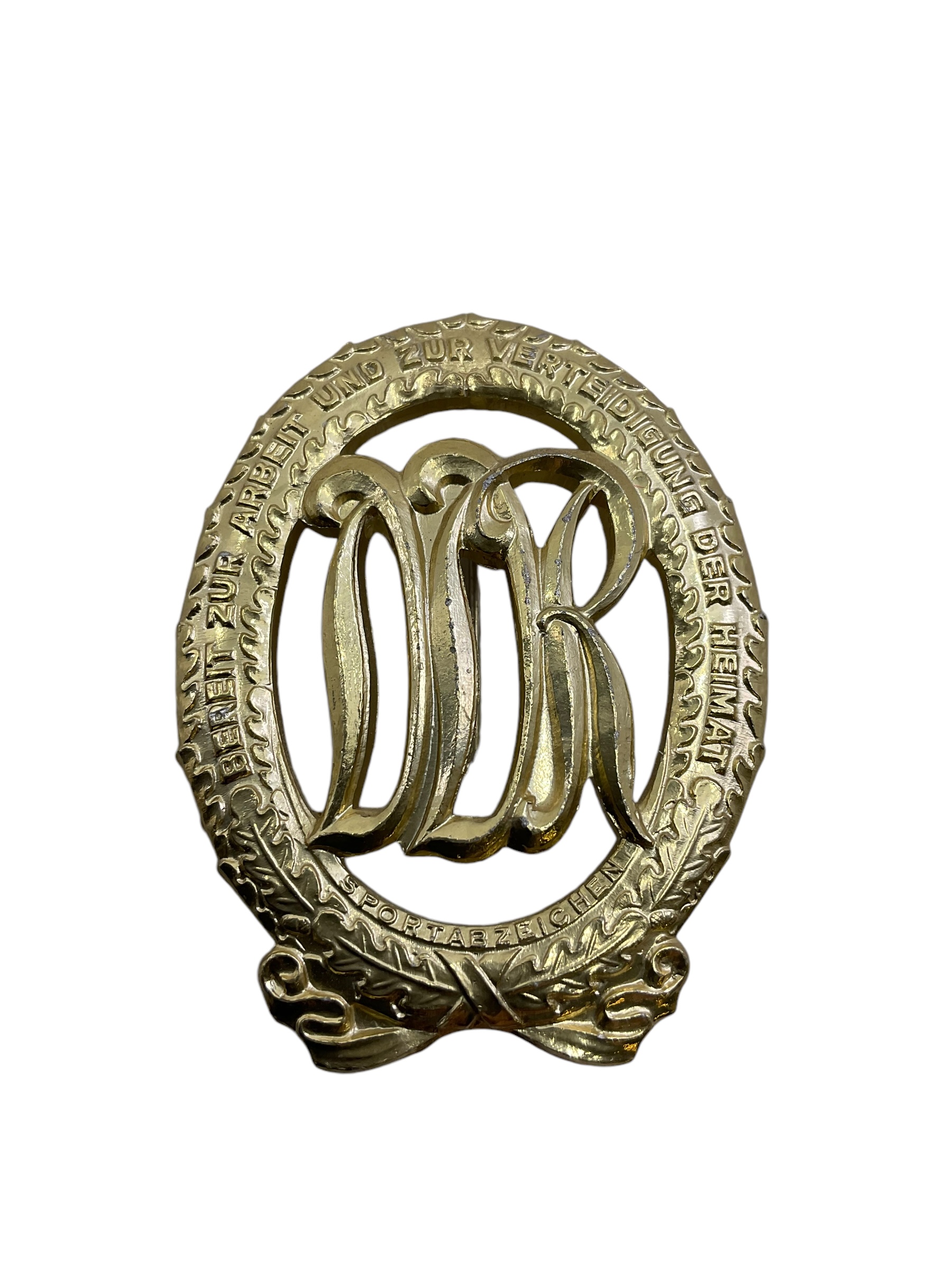 This item is a captivating artifact from the past – a genuine East German DDR Sports Badge Insignia Gold. The badge, a symbol of athletic prowess during the era of the German Democratic Republic, features meticulously detailed design elements. It is made of high-quality metal, coated in a layer of radiant gold, which has retained its luster over the years. The insignia showcases the iconic DDR emblem, a compass and hammer encased within a pair of wheat ears, symbolizing the country’s commitment to labor and progress. The badge stands as a historical testament to East Germany’s fervor for athletic excellence and the importance it placed on physical fitness. This badge would make a valuable addition to any collection, especially for those with a keen interest in sports history or East German memorabilia.