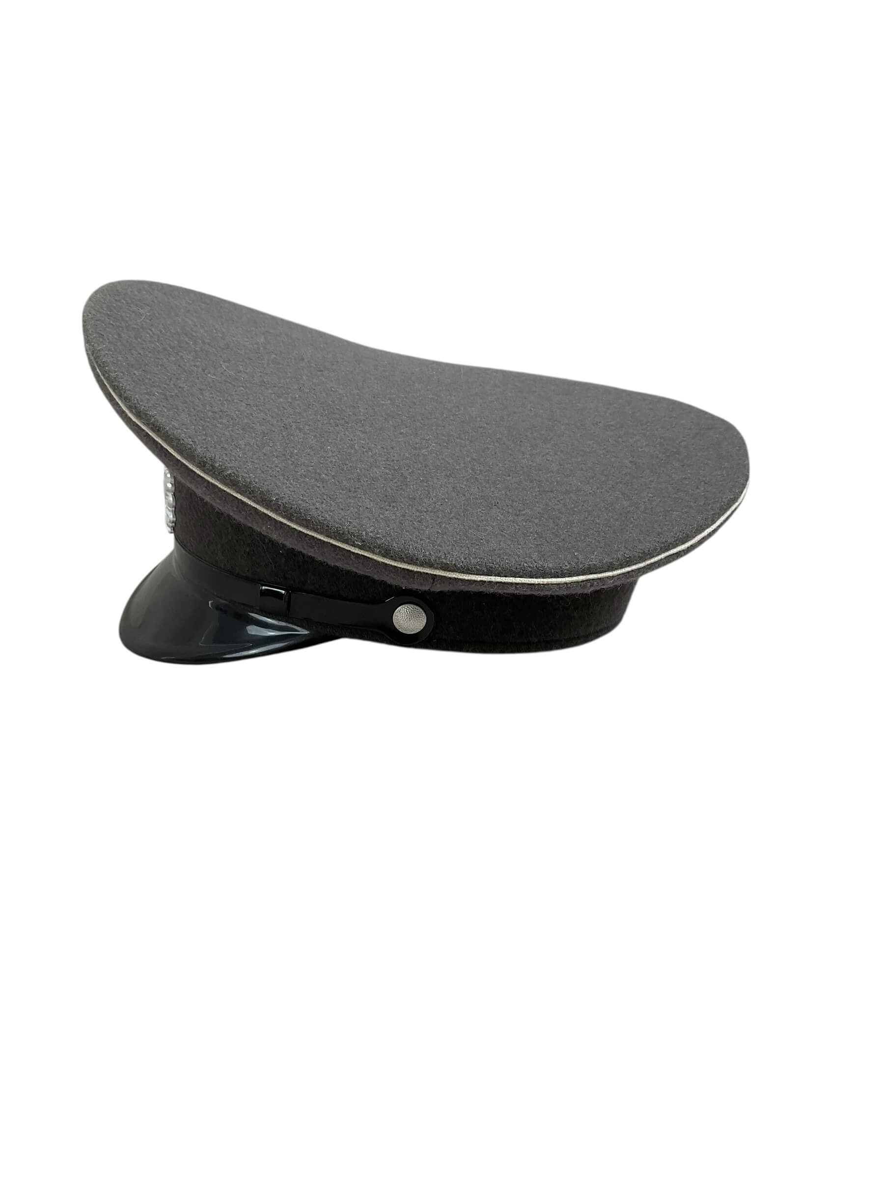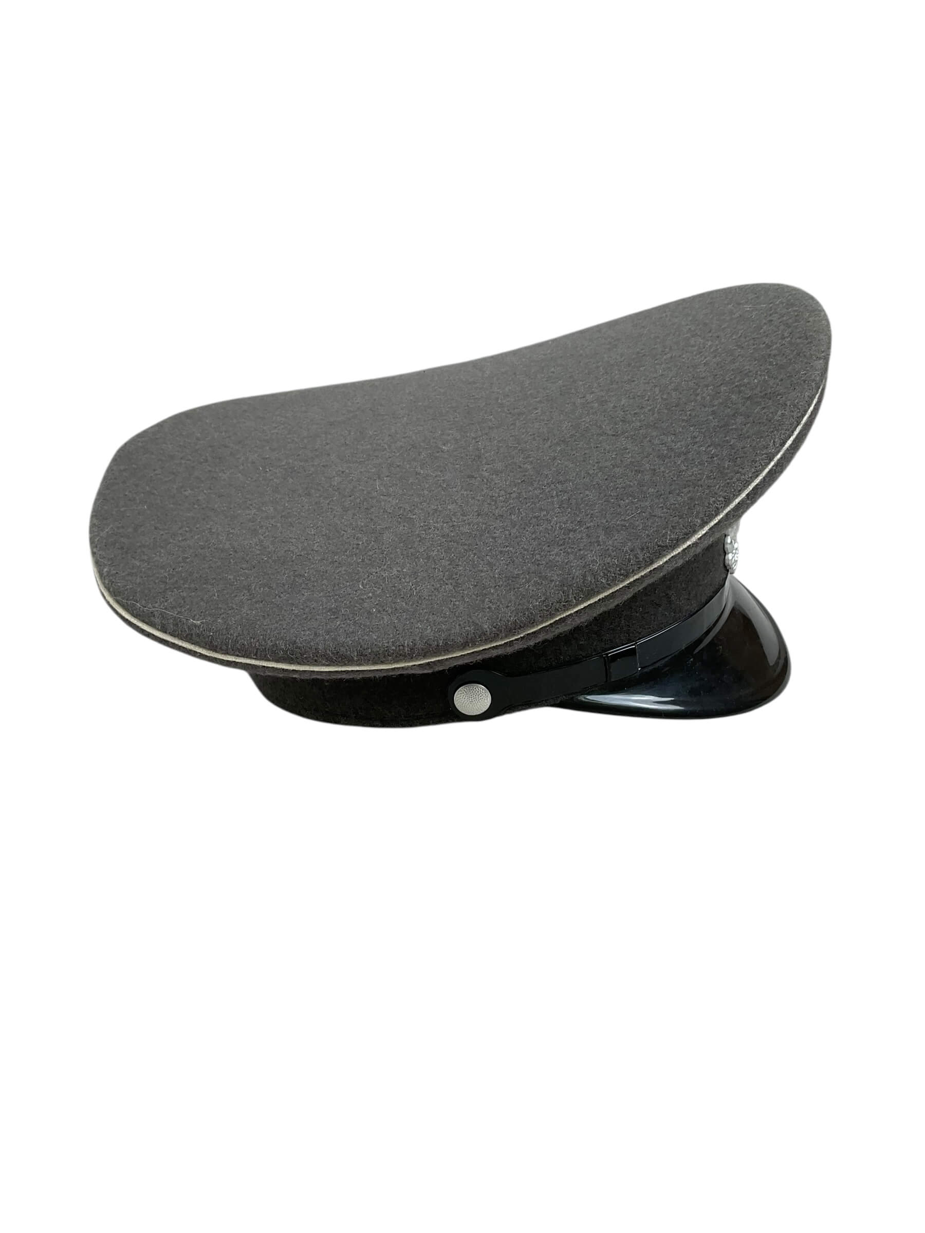 Step into the world of robust design with the East German Infantry Peak Cap Hat Size 56. This military hat echoes a part of history, straight out of the East German infantry fashion traditions. The cap is renowned for its distinctive, peak style, complemented by a rich, dark hue that adds a sublime sense of authority. Designed precisely to size 56, it caters to a comfortable and snug fit, promoting convenience while upholding style. Crafted meticulously, this authentic piece of headgear imparts high durability and longevity. The inner lining ensures comfort for prolonged usage, while the brave insignia contributes to its originality. Whether you’re an enthusiast of military history, a collector of unique items, or simply a lover of distinctive styles, this East German Infantry Peak Cap Hat promises to be a striking addition to your repertoire.