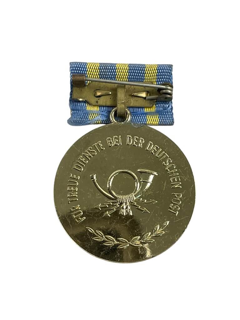 The East German Post Office Long Service Full Size Medal is a distinctive piece of history. These medals were given as a symbol of recognition for the staff members who provided long term dedicated service in the East German Postal System during the German Democratic Republic period (1949 to 1990). The medal is made of high-quality metal alloy, often appearing bronze or silver in color. It features an embossed design of two hands passing a post horn, representing the exchange of information which is the key role of postal services. On the backside, a standard design of the coat of arms of East Germany is frequently present. However, details may vary slightly from piece to piece due to manufacturing differences over the years. This full-size medal has historical significance, providing a tangible link to a bygone era. It can be a valuable addition for those interested in East German history, postal history, or medal collection.