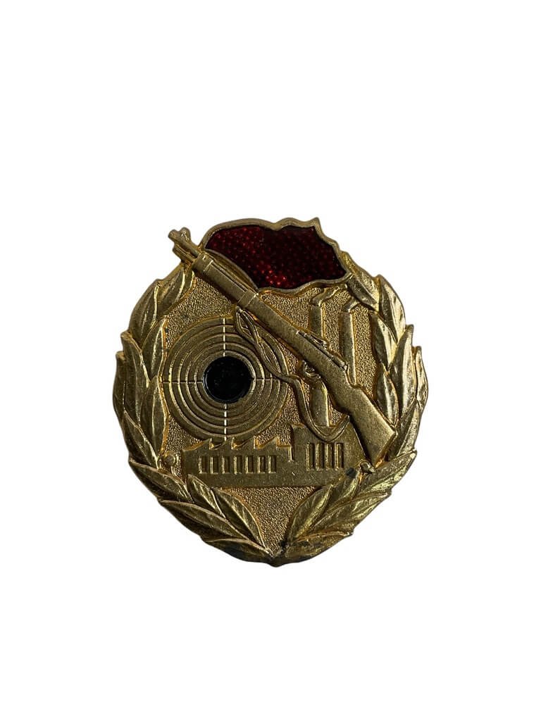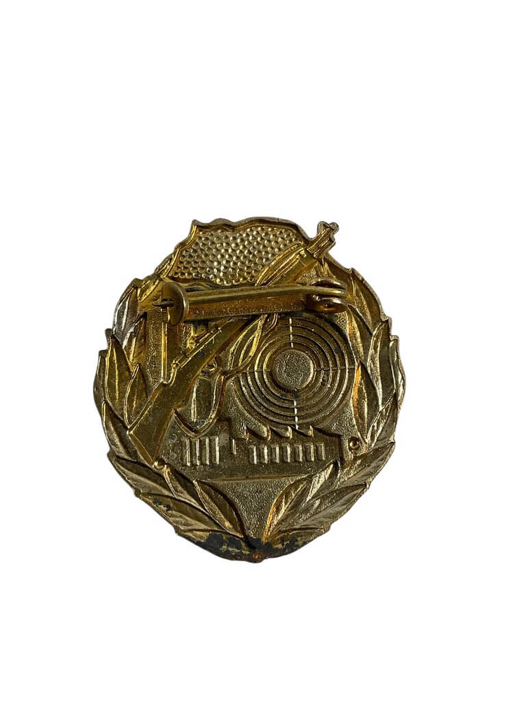 The ‘East German Shooting Badge 1st Class’ is a distinguished emblem of honor, originating from the former East Germany. This prestigious award was conferred upon individuals who demonstrated exceptional proficiency in the field of marksmanship. The badge, which is meticulously crafted with intricate detailing, illustrates the rich history and culture of the erstwhile East Germany. The 1st Class distinction of this badge signifies the highest level of achievement in shooting, marking it as an item of great interest to collectors and history enthusiasts alike. The badge often comes with an accompanying certificate, verifying the authenticity and the class of the award. The ‘East German Shooting Badge 1st Class’ stands as a testament to the shooting prowess of the recipient and serves as an iconic symbol of East Germany’s history.