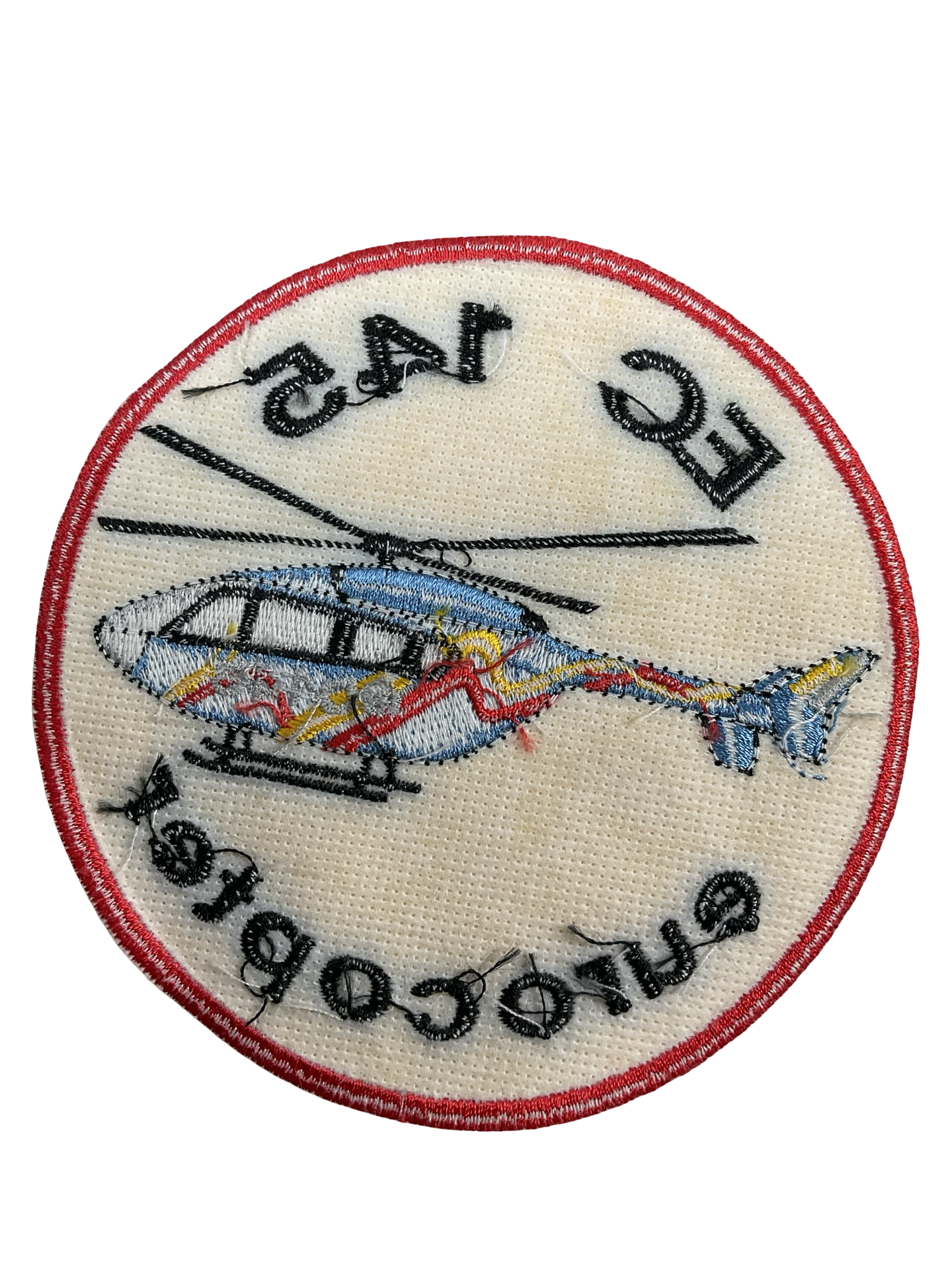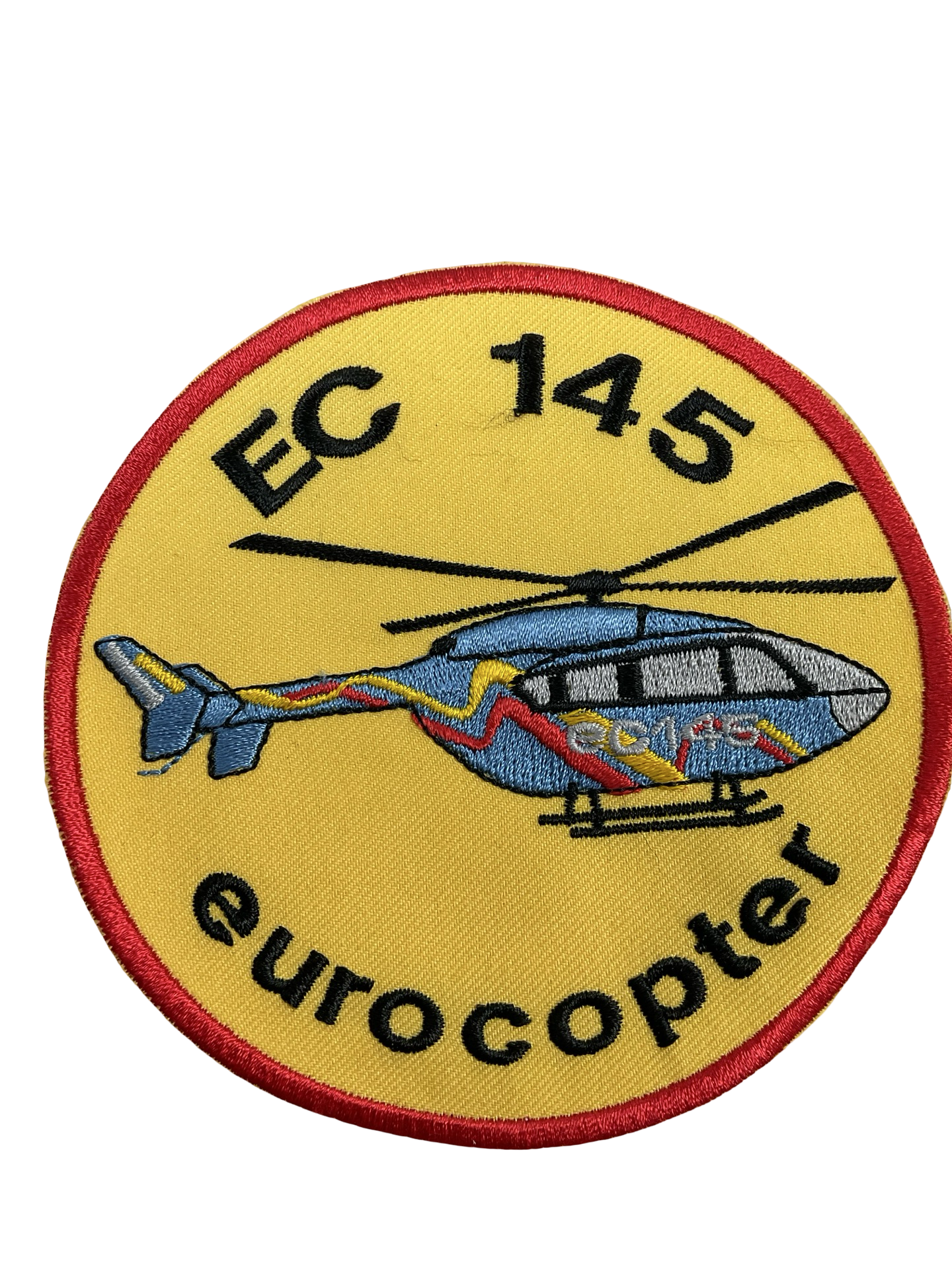 The European EC145 Eurocopter Helicopter Patch represents the EC145 multi-role twin-engine helicopter developed by Airbus Helicopters, formerly Eurocopter. The EC145 is widely used by military and civilian operators across Europe and beyond, valued for its versatility, advanced avionics, and spacious cabin design. This embroidered patch typically features a detailed depiction of the EC145 helicopter, highlighting distinctive elements such as its streamlined fuselage and fenestron tail rotor. The EC145 has served in various capacities, including search and rescue, medical evacuation, utility transport, and law enforcement operations. Many European armed forces and government agencies have incorporated the EC145 into their fleets since its introduction in the late 1990s. This patch is commonly worn on flight suits or uniforms to signify affiliation with EC145-equipped units or to commemorate service with this aircraft type. It is an item of interest for collectors focusing on military aviation and helicopter insignia.