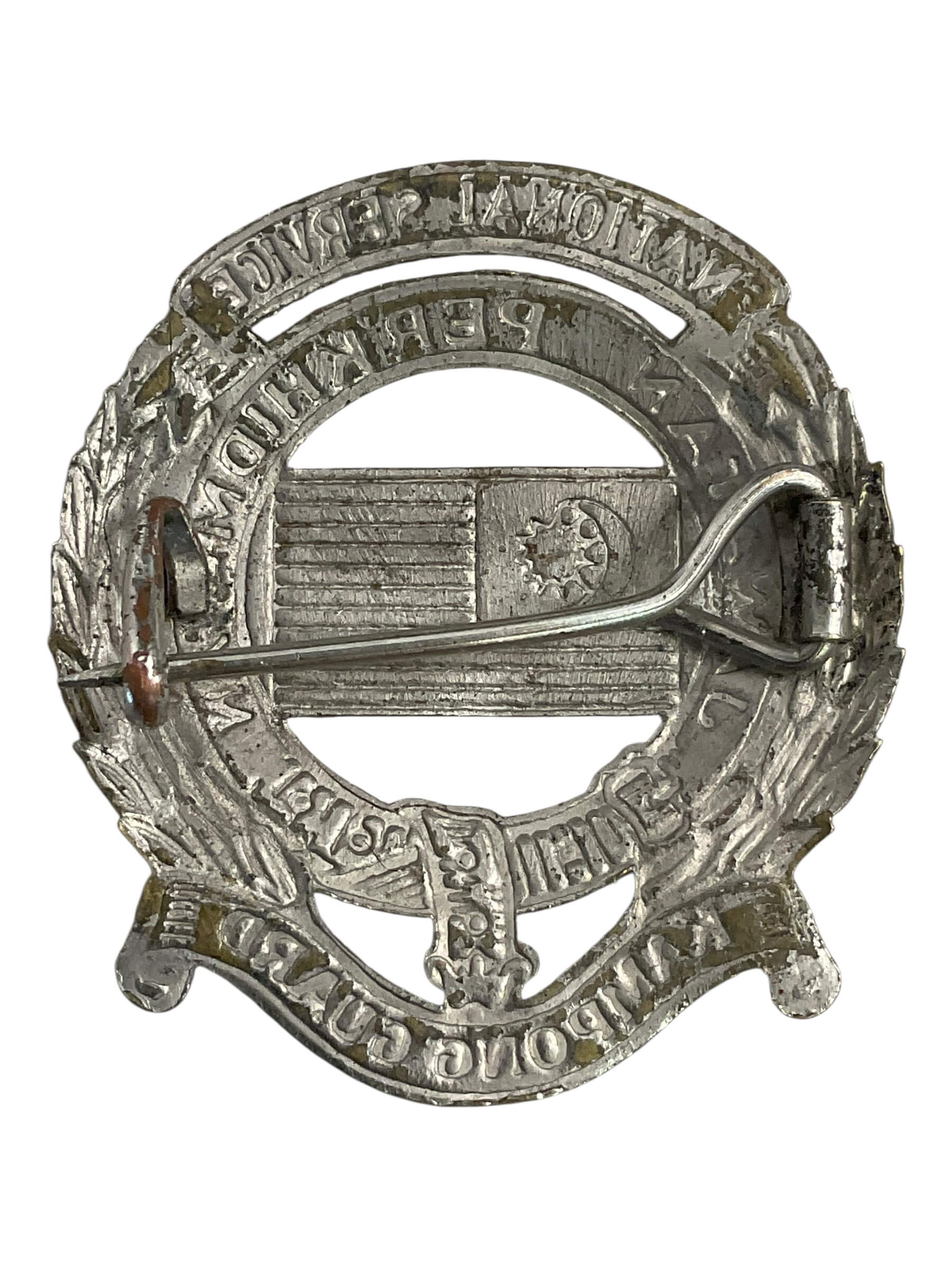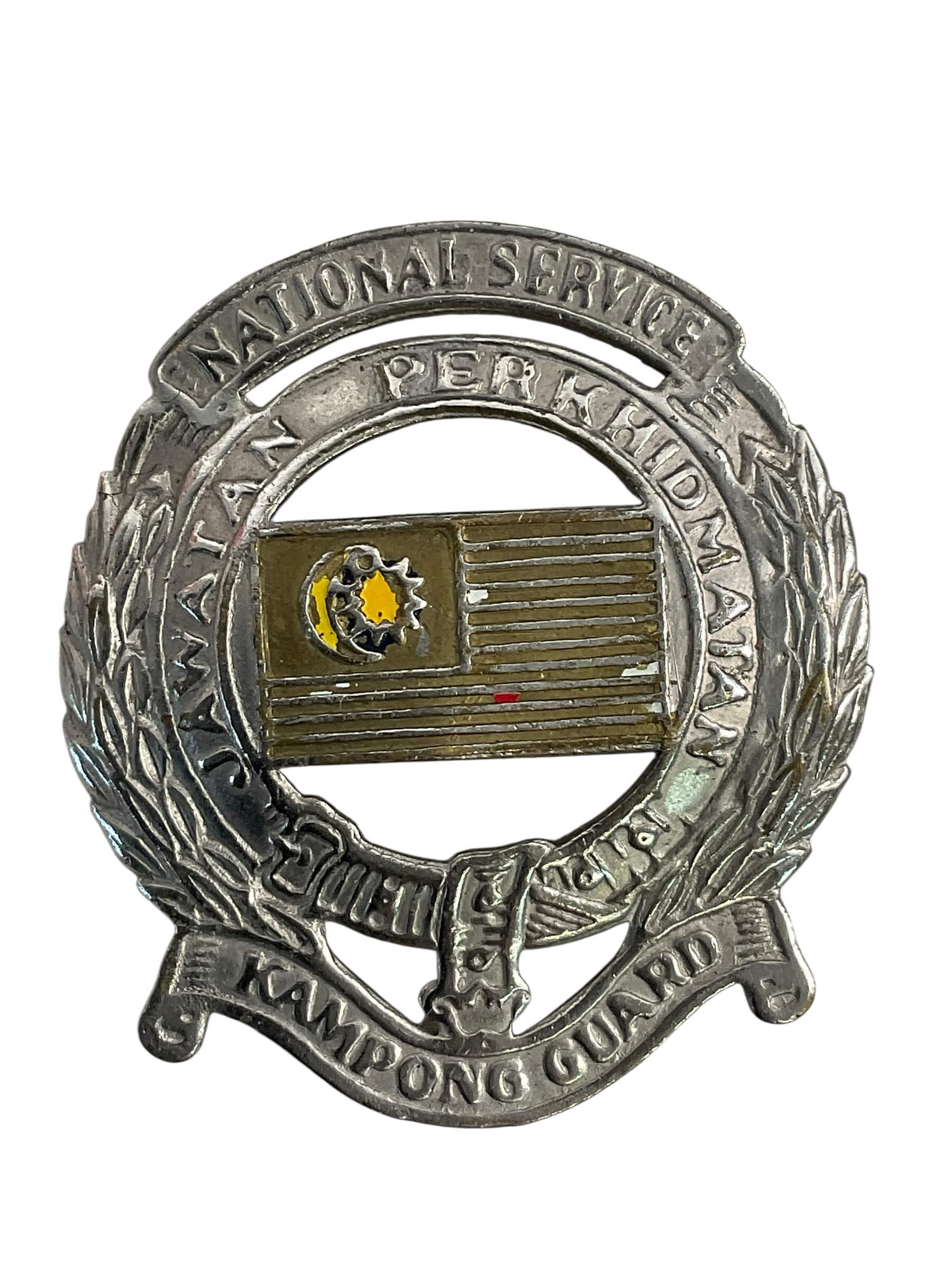 The Federation of Malaya National Service Cap Badge is a historical military insignia associated with the National Service scheme established during the late colonial period prior to the formation of Malaysia. Typically struck in brass or white metal, this badge was worn by conscripts and regular personnel serving in the National Service units between 1951 and 1957, when the Federation of Malaya existed as a British protectorate. The design usually incorporates the symbol of the Federation, featuring a crescent and star emblem, and may include a scroll or inscription denoting its purpose. The badge would have been affixed to military headgear as part of the official uniform, signifying the wearer’s participation in National Service. The item reflects the transitional period in Malayan history leading up to independence and provides insight into the organizational structure and identity of local defense forces at that time. Dimensions, materials, and specific design elements may vary across issued examples.