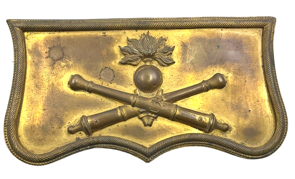 The “France French Artillery Officers Brass Cartouche Pouch Flap” is a remarkable piece of military history, emblematic of the precision and style associated with French artillery officers. This brass cartouche pouch flap, featuring intricate designs and embellishments, served both a functional and ceremonial role. Crafted from durable materials, it was used to securely hold ammunition while reflecting the prestige and commitment of its wearer. The artistry and craftsmanship evident in the flap’s design showcase the attention to detail typical of French military accouterments. Collectors and historians alike treasure these items for their historical significance and aesthetic appeal, as they offer a tangible link to the rich traditions of French military heritage. Whether displayed in a personal collection or as part of a museum exhibit, this brass cartouche pouch flap continues to captivate with its blend of utility and elegance.