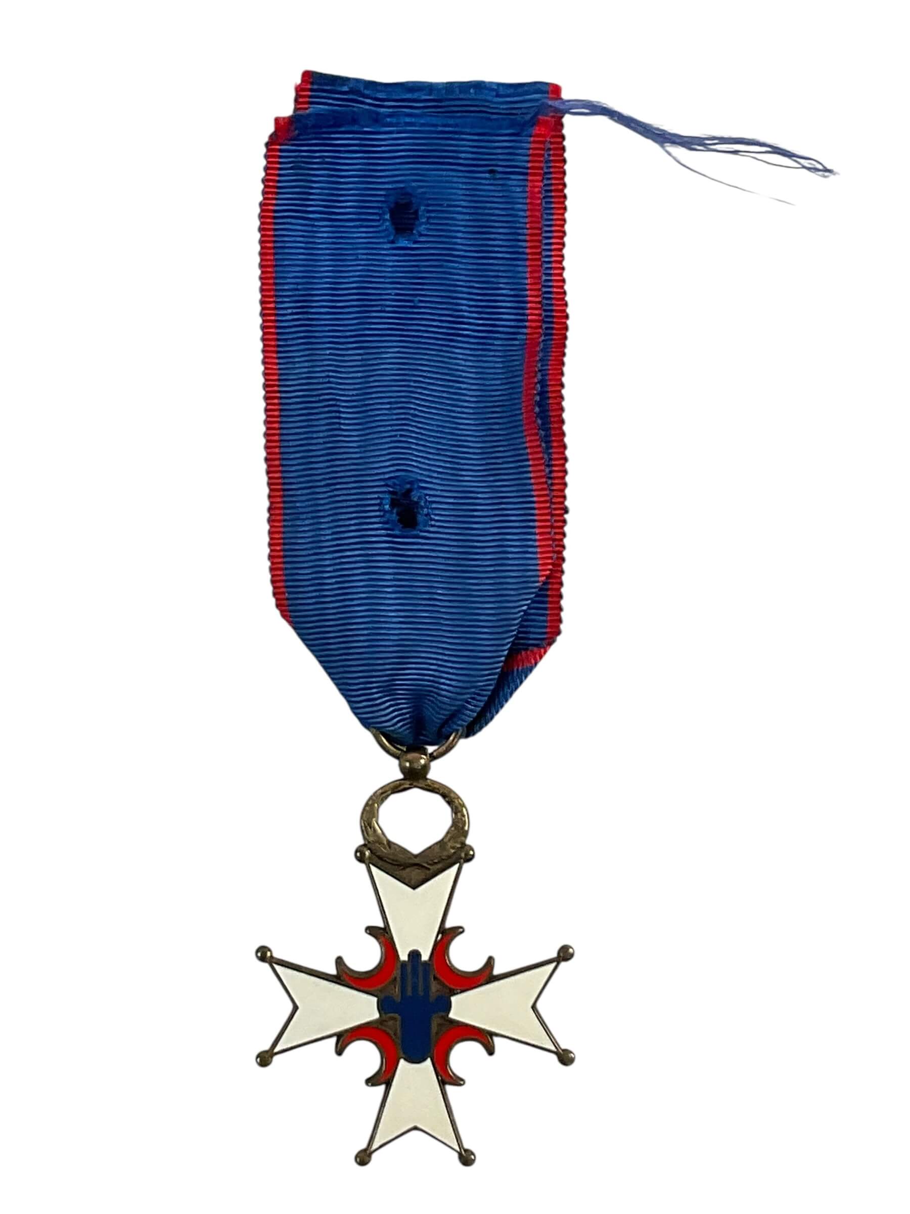 The France French Croix de Djebel Full Size Medal is a military decoration awarded by France, primarily recognizing service related to operations in the mountainous Djebel regions, notably during the Algerian War (1954–1962). Instituted in 1957, the medal honors both French and allied personnel who distinguished themselves through participation in counter-insurgency and operational campaigns in these areas. The full-size medal features a bronze cross set on a laurel wreath, symbolizing valor and achievement, with an effigy of the Republican profile at the center. The reverse typically bears the inscription “Croix de Djebel.” It is suspended from a distinctive ribbon in blue with red and green stripes, reflecting the colors associated with campaign medals of the period. The Croix de Djebel holds significance as a testament to the complexities and commitments of French military operations in North Africa during the mid-20th century. This decoration remains a notable item for collectors of French military and historical memorabilia.