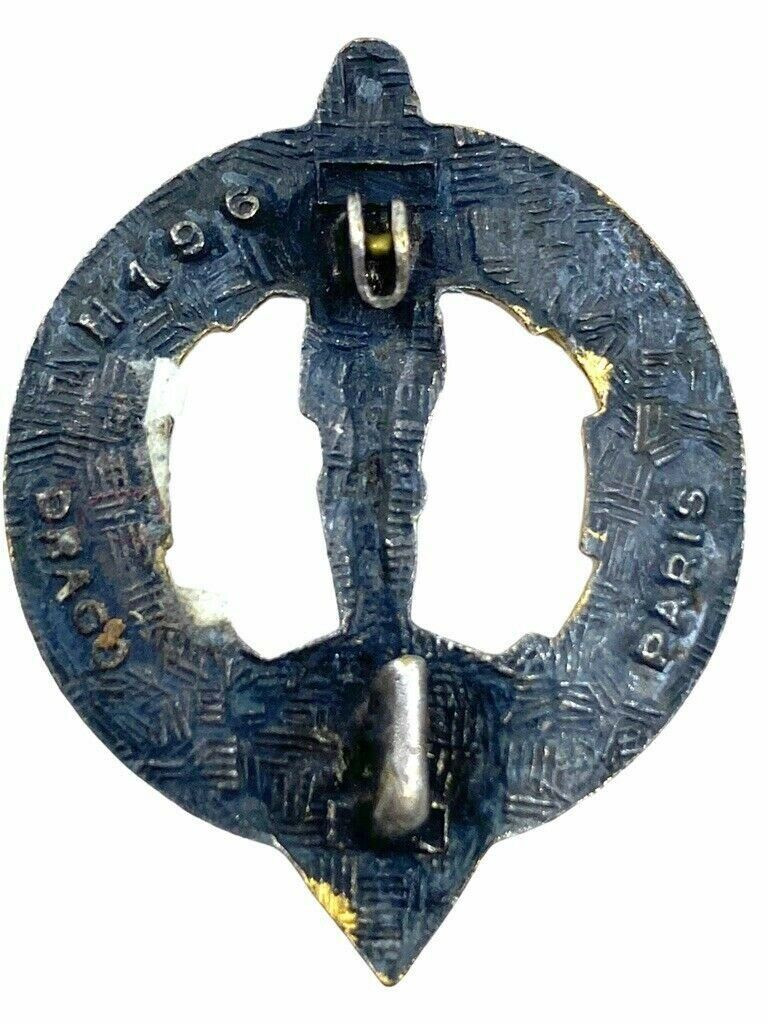 The French France 32nd Artillery Regiment Badge Insignia is a captivating emblem of historical significance, representing one of France’s prestigious artillery units. This intricately detailed badge symbolizes the valor and military prowess of the 32nd Artillery Regiment, which has played a vital role in France’s defense history. The insignia typically features traditional heraldic elements, showcasing the regiment’s proud heritage and commitment to excellence. Despite the pin on the back being missing, the badge retains its intricate design and charm, making it a cherished collectible for military enthusiasts and historians alike. This emblem not only serves as a testament to the regiment’s distinguished service but also offers a tangible connection to the storied past of French military tradition, making it a valuable piece for any collection or display.