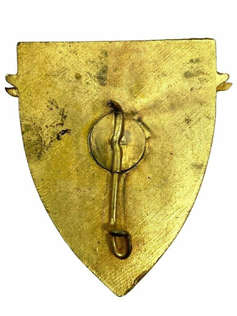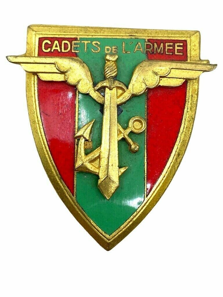 The French France Cadets De L’Armee Army Badge Insignia is a notable emblem representing the proud cadets of the French Army. This insignia holds historical significance, symbolizing the honor, tradition, and discipline of young cadets in training to become the future defenders of France. Crafted with intricate detail, the badge typically features iconic French military symbols, often including the tricolor flag or elements of the national coat of arms. Despite the pin on the back being missing, this badge remains a fascinating collector’s item, cherished by enthusiasts of military memorabilia. The absence of the pin does not detract from its visual appeal and historical importance, making it a valuable piece for those interested in military history or French heritage. This badge not only signifies rank and achievement but also serves as a timeless memento of dedication and service in the French Armed Forces.