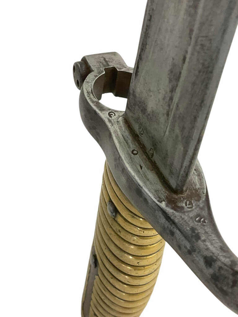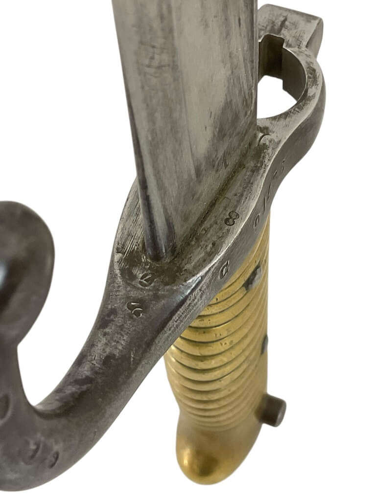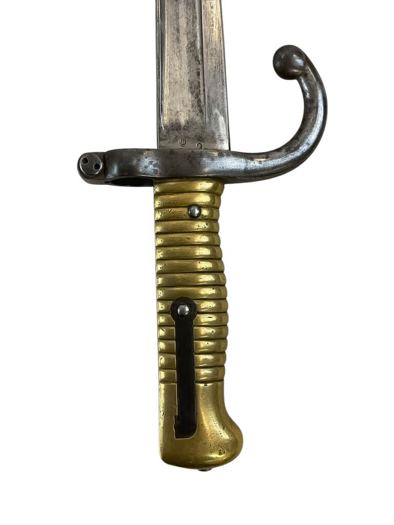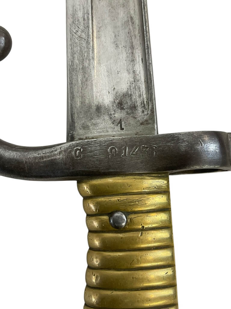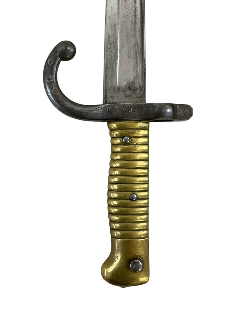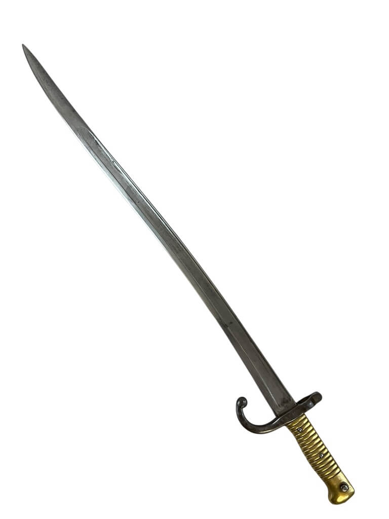This item is a remarkable piece of military history, a French Lebel Sword Bayonet dating back to 1871. This bayonet, despite its age, still holds an impressive presence, showcasing the fine craftsmanship of the period. It features a long, slim blade with a fuller running along its length, indicative of the Lebel design. The handle boasts a unique brass grip, giving it an antique appeal. While it does not come with the original scabbard, the bayonet itself is in good condition. The year 1871 is inscribed on the blade, marking the Franco-Prussian War period. This piece would be an excellent addition to any military memorabilia collection, serving as a tangible reminder of France’s rich martial heritage.