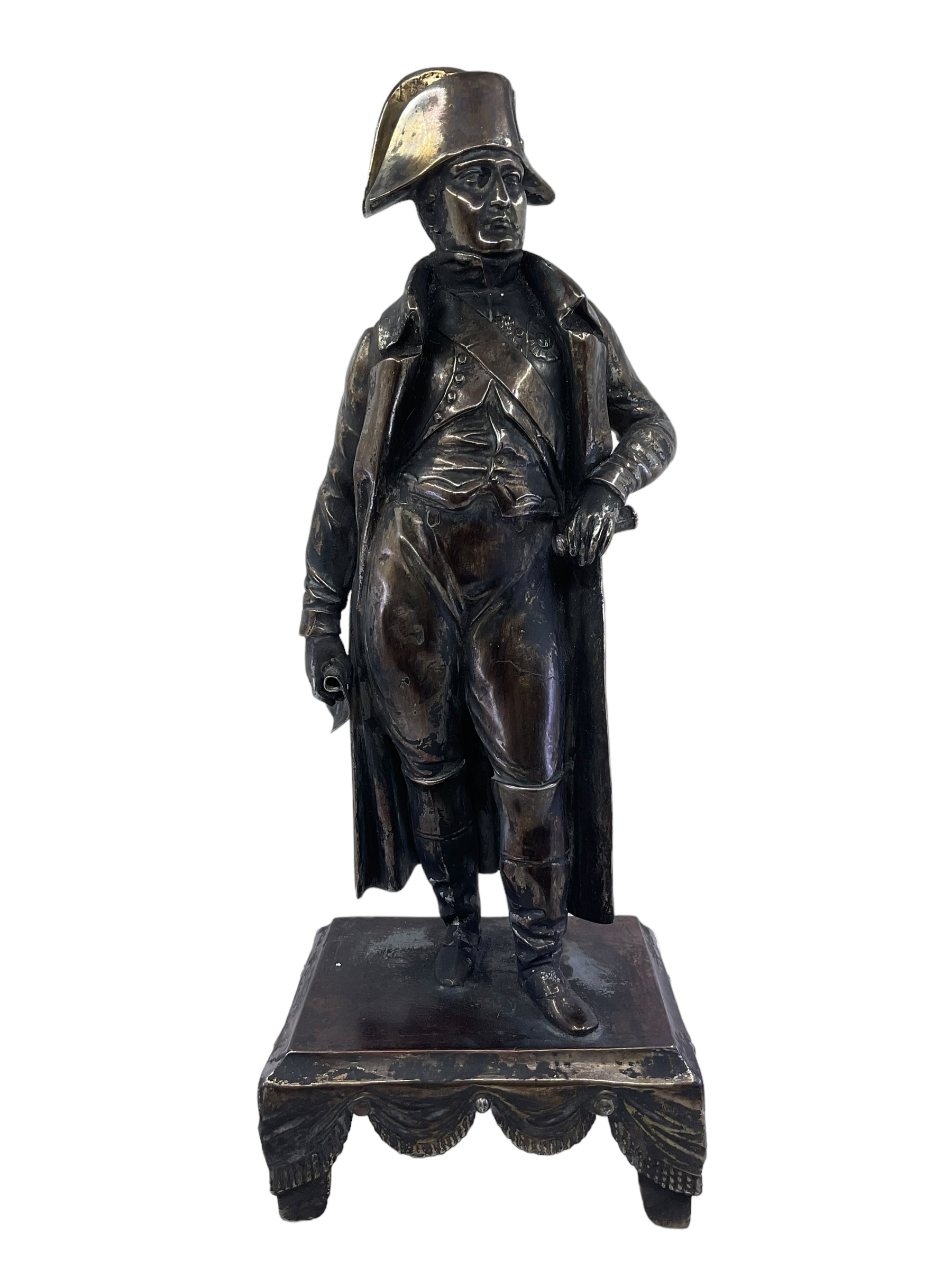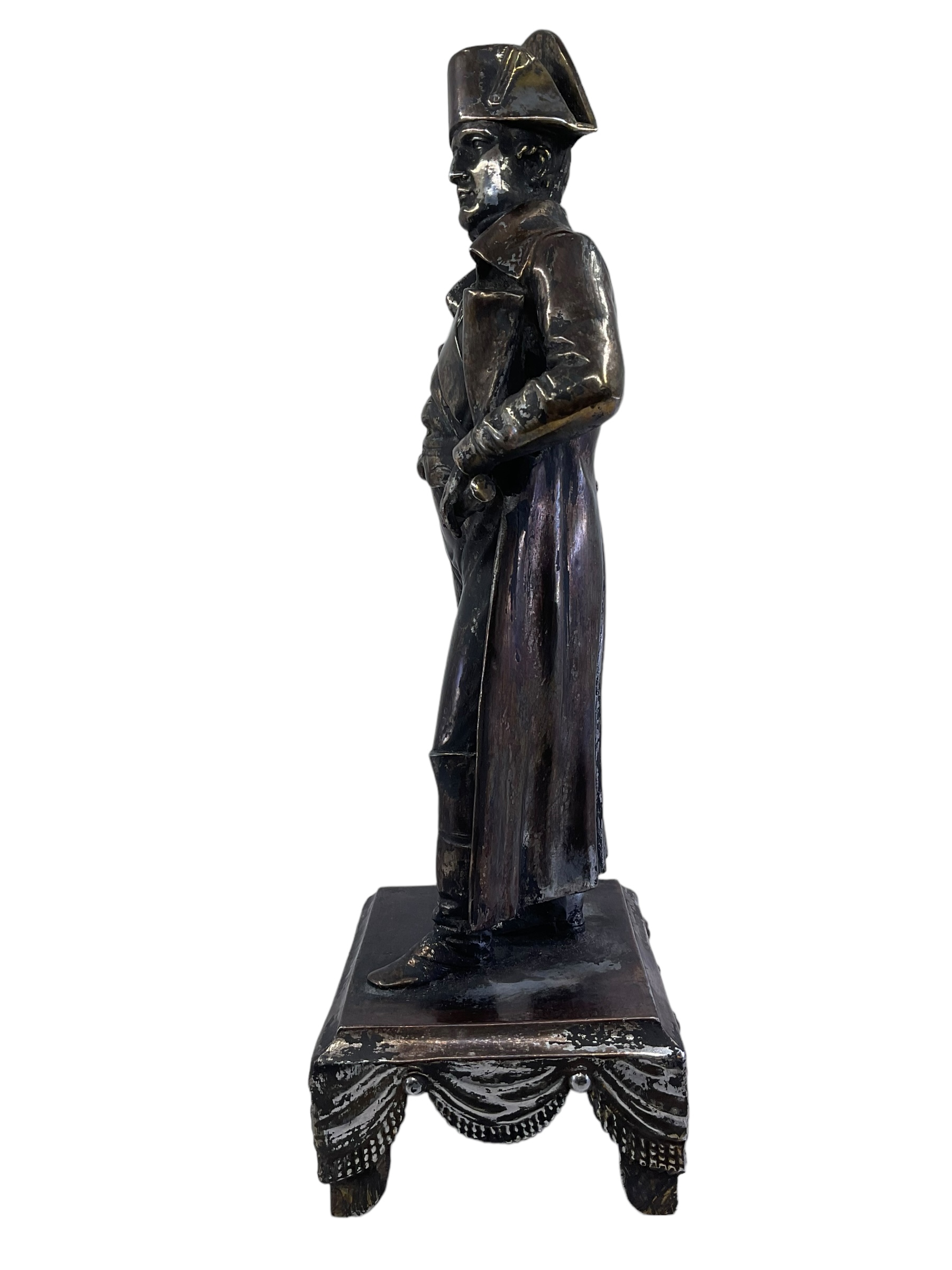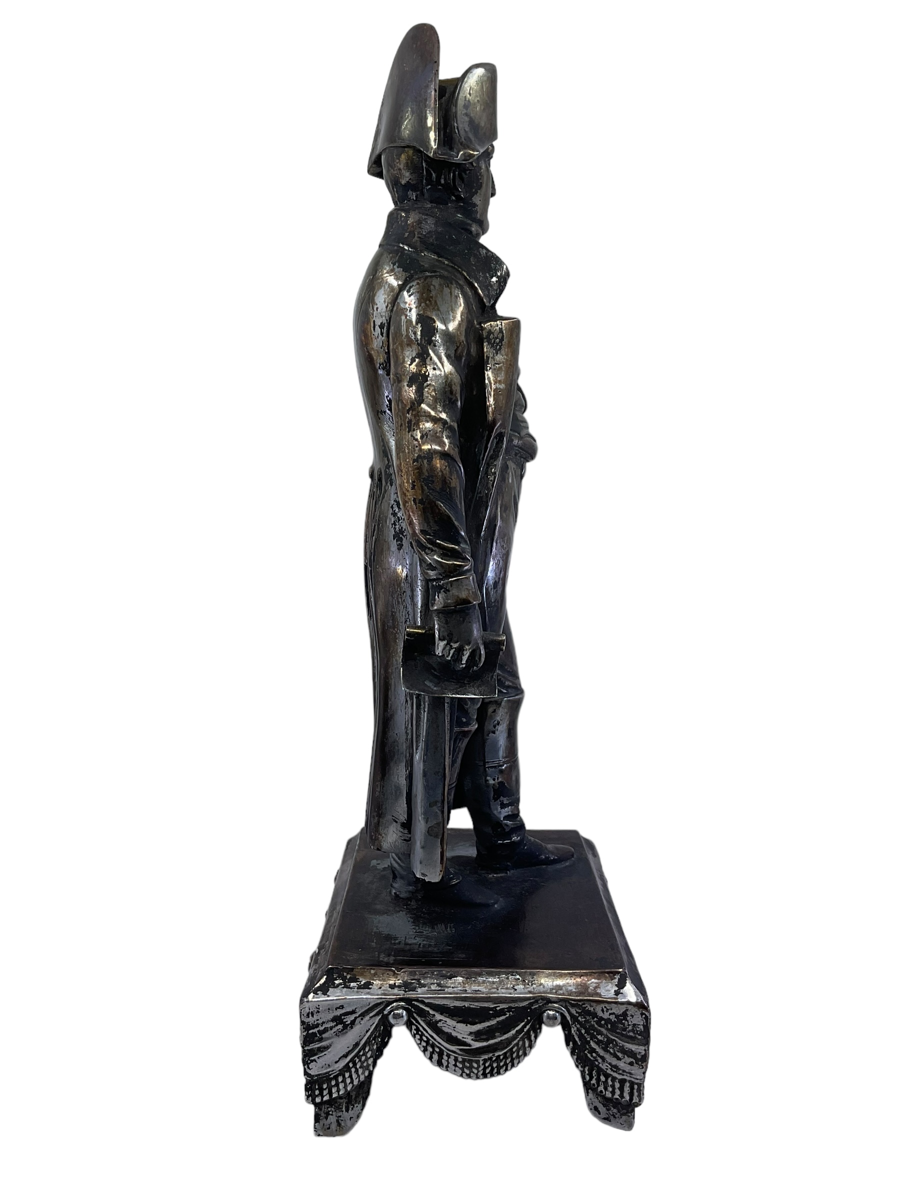 Enhance your collection with this exquisite French Napoleon Silvered Statue, standing elegantly at 13 inches tall. A vintage piece that exudes historical charm and sophistication, it encapsulates the grandeur of the Napoleonic era with intricate detailing and a silvered finish that gleams with timeless allure. This statue captures Napoleon Bonaparte in a commanding pose, reflective of his formidable presence and iconic stature in European history. The craftsmanship showcases meticulous attention to detail, from the contours of his uniform to the determined expression on his face, making it a standout piece for any enthusiast of history or fine art. Perfect for display in your home, office, or study, this vintage statue not only serves as a decorative centerpiece but also as a conversation starter, connecting the past to the present. Embrace a touch of French heritage with this remarkable statue that pays homage to one of history’s most legendary figures.