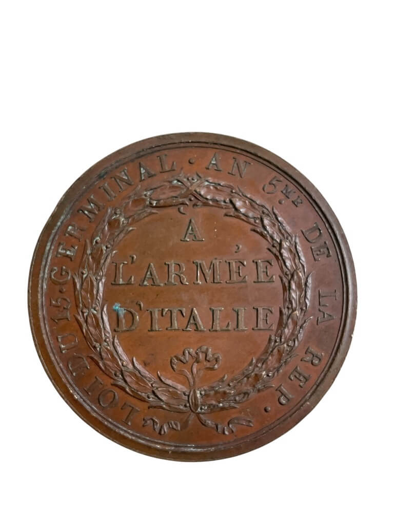 The French Napoleonic Crossing the Tagliamento Pass 1797 Bronze Medallion is an authentic artifact highly sought-after by collectors. This bronze Medallion, stamped in 1797 during Napoleon Bonaparte’s Italian campaigns, commemorates the French Army’s strategic crossing of the Tagliamento River in the same year. Cast from bronze, its design features elaborately detailed depictions, with Napoleon’s portrait prominently displayed on one side and the scene of the crossing on the other. Additional inscriptions on the medallion include the words “Tagliamento” and “1797,” firmly grounding it in its historical context. This particular piece offers an opportunity for enthusiasts or scholars to engage with a tangible piece of history. Authenticity has been confirmed based on its weight, patina, and the precision of its markings. However, it should be noted that as with many historical artifacts, replicas are present in the market, making provenance verification vital to ensure its legitimacy.