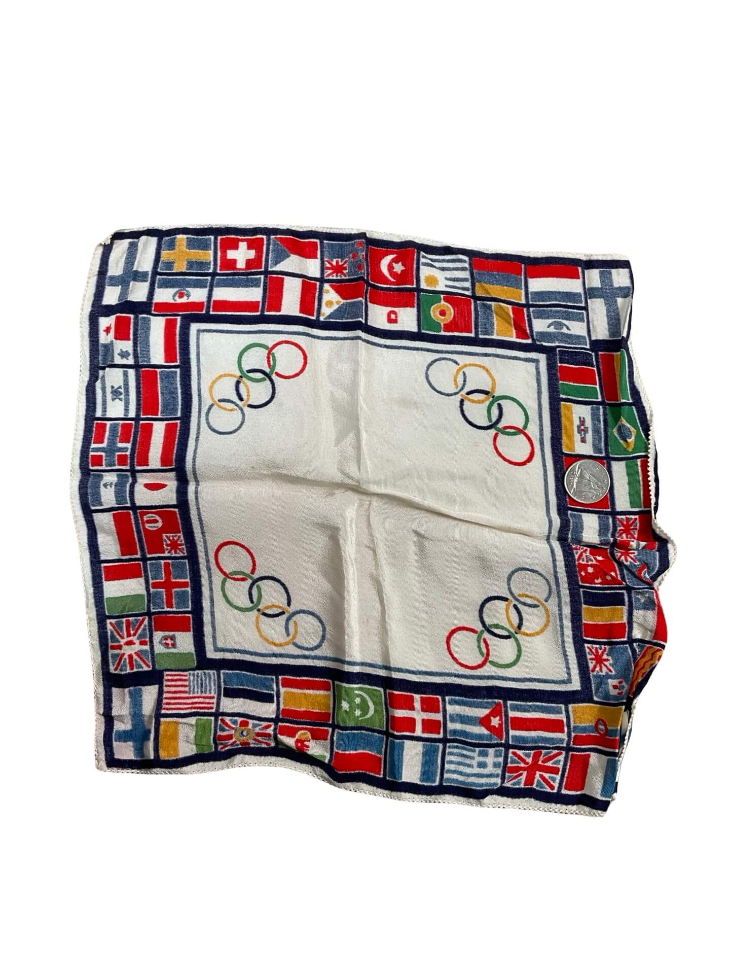 The German 1936 Olympics Doily is a textile item produced in connection with the 1936 Summer Olympic Games held in Berlin, Germany. Typically, such doilies were made from cotton or similar fabric and featured machine-embroidered motifs associated with the event. Common designs include the official Olympic rings, the year “1936,” and often the wording “Berlin.” Some examples may also include the German national eagle, providing a representation of the host nation. These doilies were likely sold or distributed as commemorative souvenirs during the games and were intended for decorative use in homes or as collectors’ items. The 1936 Berlin Olympics were a significant event in interwar Europe, drawing international attention both for the sporting competitions and the political climate of the period. This piece serves as a representation of Olympic memorabilia from the era and reflects the materials and design typical of German souvenir textiles from the 1930s.
