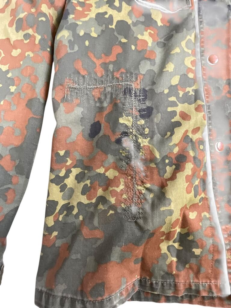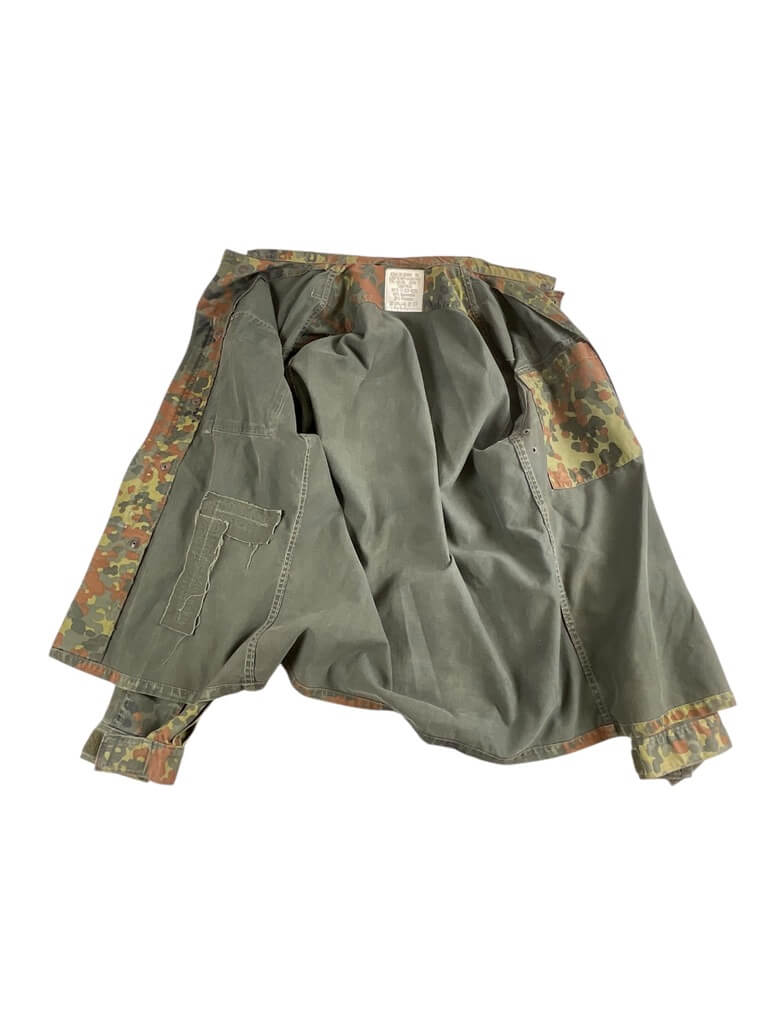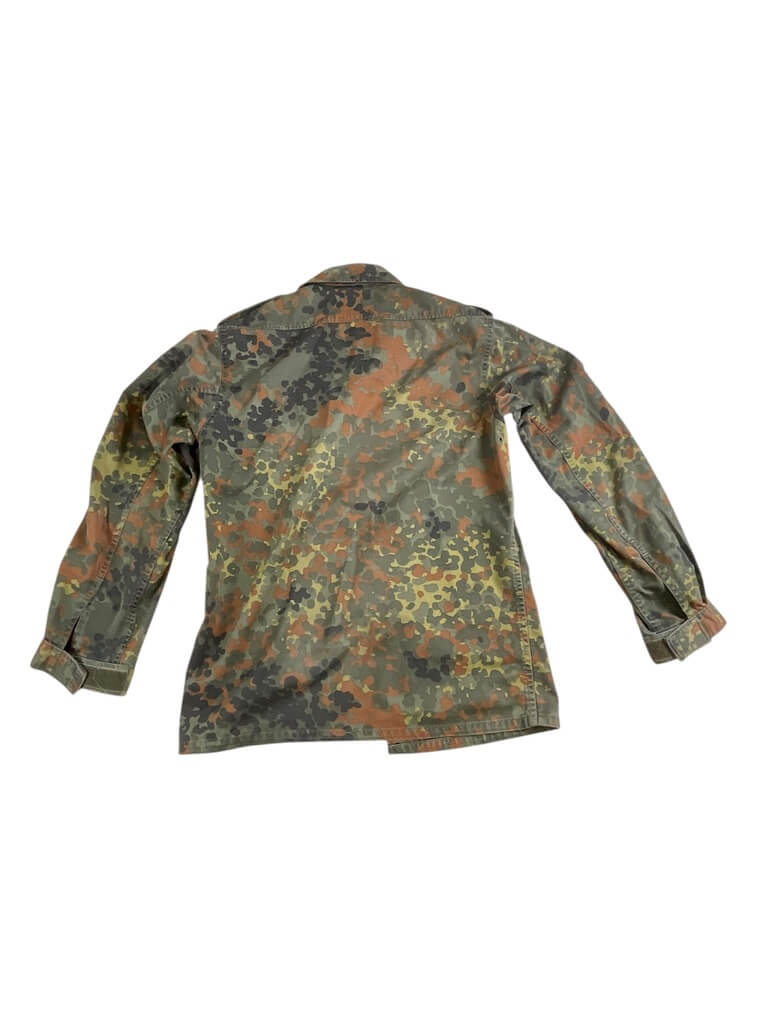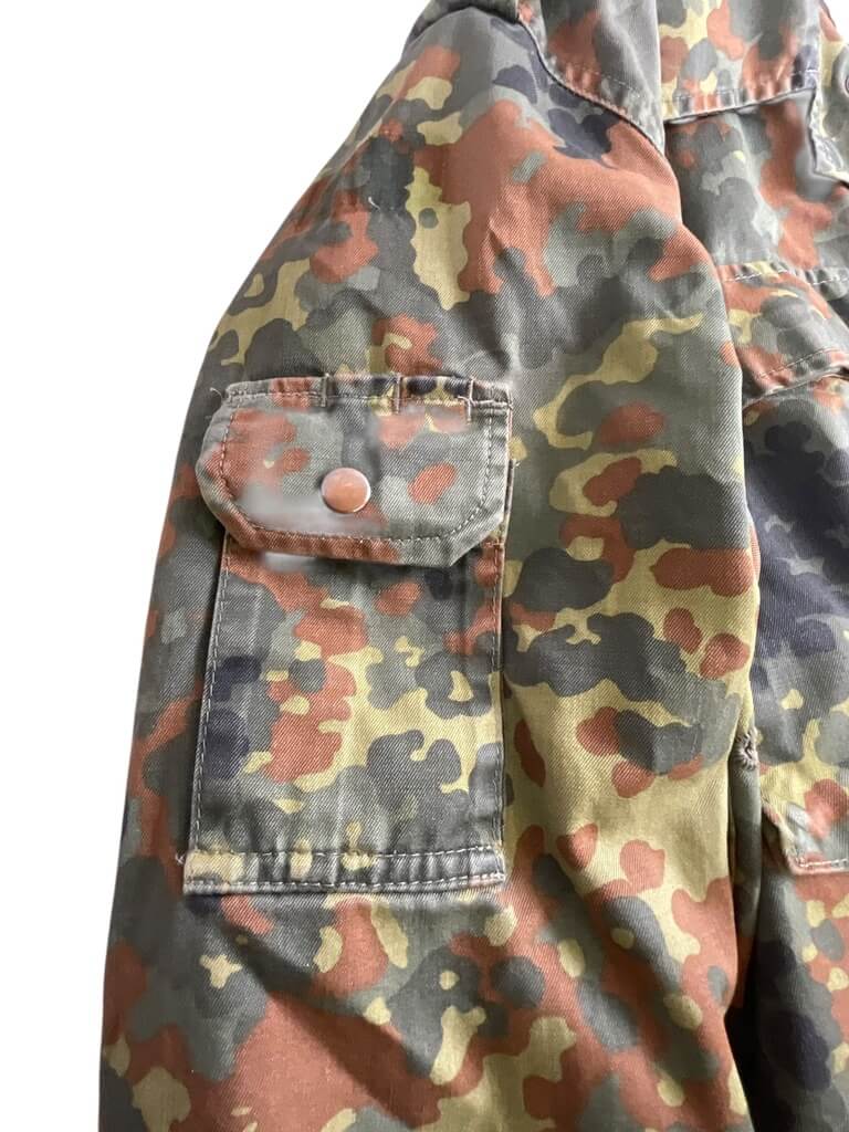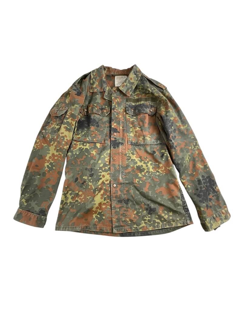 The ‘German Army Flecktarn Shirt’ is an authentic piece of military clothing, reflecting the robustness and practicality required in combat situations. Originally designed for and worn by soldiers of the Bundeswehr, Germany’s unified armed forces, it features the distinct Flecktarn camouflage pattern. This five-color design is intended to work in various landscapes, providing excellent concealment for wearers. The shirt is made of durable, high-quality material and is designed for comfort, even in demanding conditions. It includes functional features such as adjustable cuffs, a robust front zip, and ample pocket space for convenient storage. Ideal for outdoor enthusiasts, military collectors or anyone wanting a reliable and rugged garment, the German Army Flecktarn Shirt is a testament to German engineering and tactical practicality.