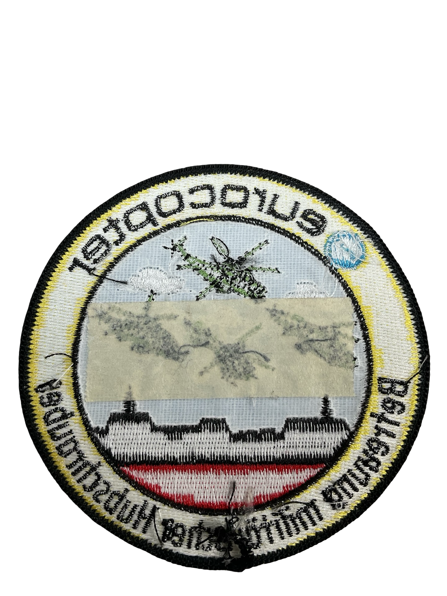 The German Eurocopter Military Helicopter Support Patch is an embroidered insignia representing personnel involved in the operation and maintenance of the Eurocopter line of helicopters within the German military. The Eurocopter family, including models such as the Tiger and NH90, plays a critical role in Germany’s rotary-wing aviation capabilities, supporting transportation, reconnaissance, and combat missions. Typically worn on flight suits or uniforms, this patch features design elements such as the Eurocopter silhouette and relevant unit or support symbols, reflecting the wearer’s affiliation with helicopter maintenance and operations units. The patch uses durable materials and stitching to withstand service conditions. Its design may vary according to specific units or roles within the military’s aviation branch, but it functions primarily as a means of identification and esprit de corps among support staff. This item offers a representative example of contemporary German military insignia related to modern helicopter support operations.