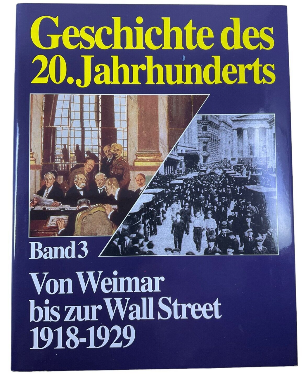 This is a used hardcover German History of the 20th Century Vol 3 From Weimar to Wall Street 1918 to 1929 GERMAN TEXT Reference Book.  Total of 176 pages with lots of pictures and information.