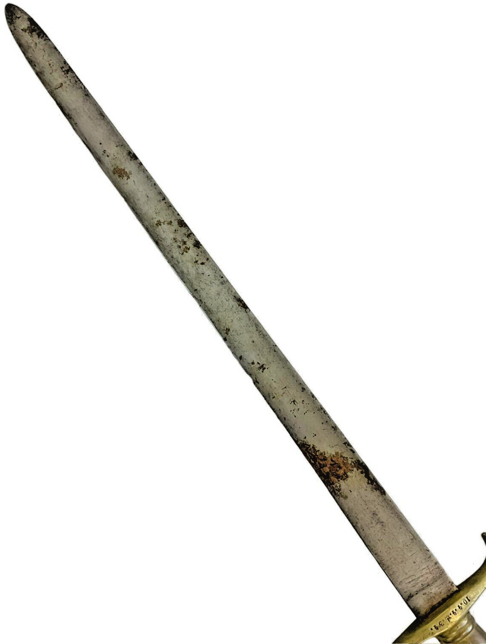 The “German Prussian Artillery Short Sword Model 1849 Faschinenmesser No Scabbard” is a notable piece of military history from the mid-19th century. This short sword, also known as a Faschinenmesser, was standard issue for Prussian artillery units. Designed in 1849, it demonstrates the robust craftsmanship synonymous with German military equipment of that era. The Faschinenmesser features a solid, well-balanced blade capable of both cutting and thrusting, making it a versatile tool for artillerymen who needed to clear brush or manage fortifications. While this particular model comes without a scabbard, its historical significance and sturdy design make it a valuable collector’s item. Owning such a piece provides a tangible connection to the storied military traditions of Prussia, reflecting a time when precision and durability were paramount. This short sword is not just an artifact but a testament to the engineering and strategic prowess of the Prussian army.