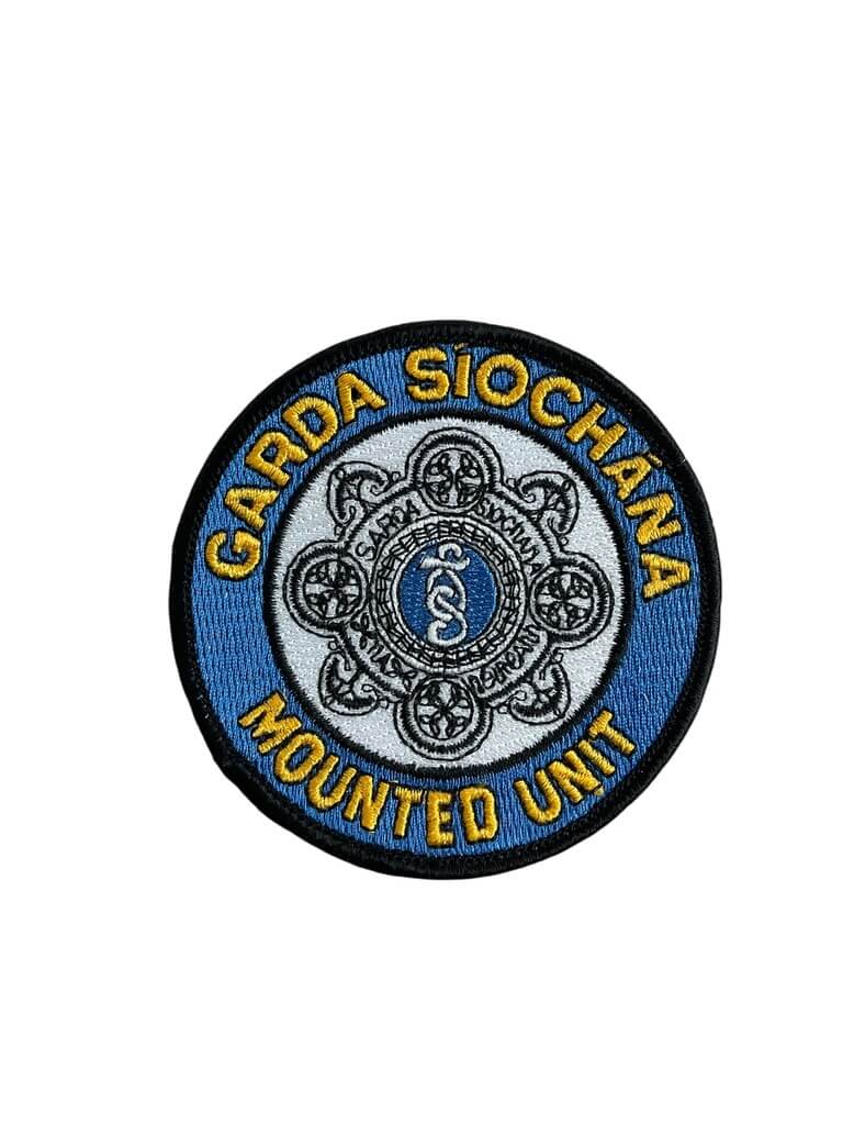 This item is an authentic Irish Police Garda Siochana Mounted Unit Police Patch. It’s a small, yet significant emblem that represents the mounted unit of Ireland’s national police service, An Garda Síochána. The patch is highly detailed, featuring the Irish harp, a symbol of the nation, alongside other distinctive elements. The rich coloring – a distinctive blue and gold – adds to its visual appeal. This patch is not just an accessory, but also a symbol of pride and honor for those serving in the mounted unit. It’s an excellent piece for collectors of police memorabilia, Irish heritage items, or anyone with an interest in law enforcement history. Crafted with care, this patch embodies the spirit of the Irish police force. A must-have for those who appreciate the unique and historic aspects of worldwide law enforcement.