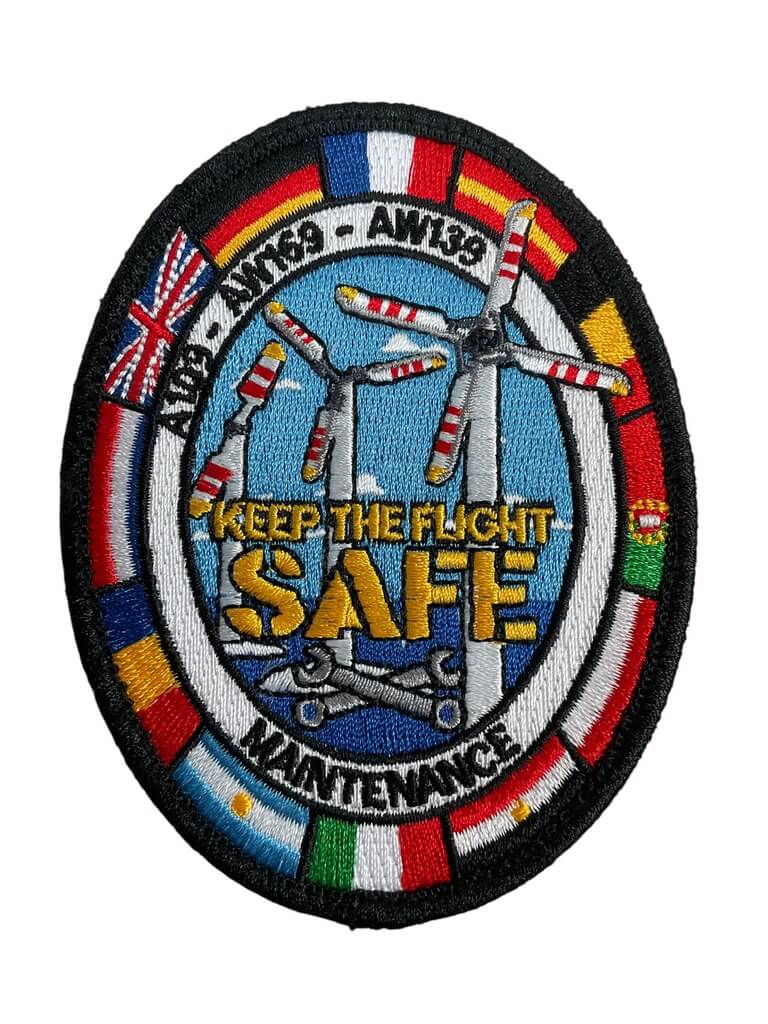 The Italian A109 – AW169 – AW139 Maintenance Patch is an embroidered insignia associated with the maintenance crews responsible for the AgustaWestland (now Leonardo) helicopter models A109, AW169, and AW139. These helicopters are widely used by military, law enforcement, and search and rescue units, primarily for transport, reconnaissance, and support roles. The patch features designs or text denoting the three aircraft types, typically intended for wear on work uniforms, jackets, or overalls by technical personnel. These patches serve both as identifiers of crew specialization and as recognition of the technical skills required to service these advanced rotary-wing aircraft. Manufactured in standard sizes, the patch employs durable materials and stitching to withstand field use. This item represents contemporary or recent issue within military and paramilitary aviation contexts, reflecting the importance of equipment maintenance in operational readiness. It is a relevant collectible for those interested in modern aviation insignia or the hardware used by Italian and allied forces.