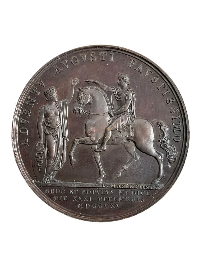 Italian Arrival of the Austrian Emperor in Milan 1815 Bronze Medallion