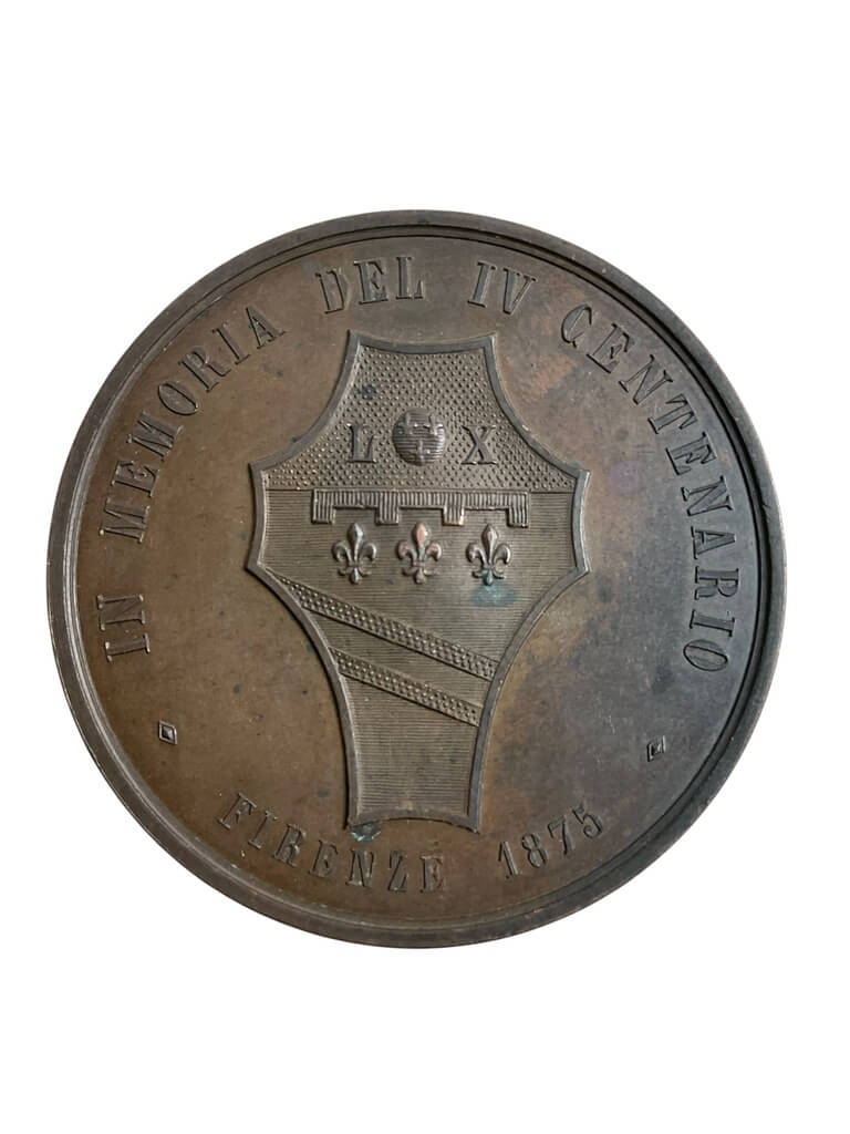 The Italian Michelangelo Buonarroti 1875 4th Centenary Bronze Medallion is a historic commemorative coin. Designed to mark the 400th anniversary of Michelangelo’s birth, it features high-quality bronze construction. This medallion offers intricate detailing, reflecting the artistry of the renowned sculptor, painter, and architect it honors.