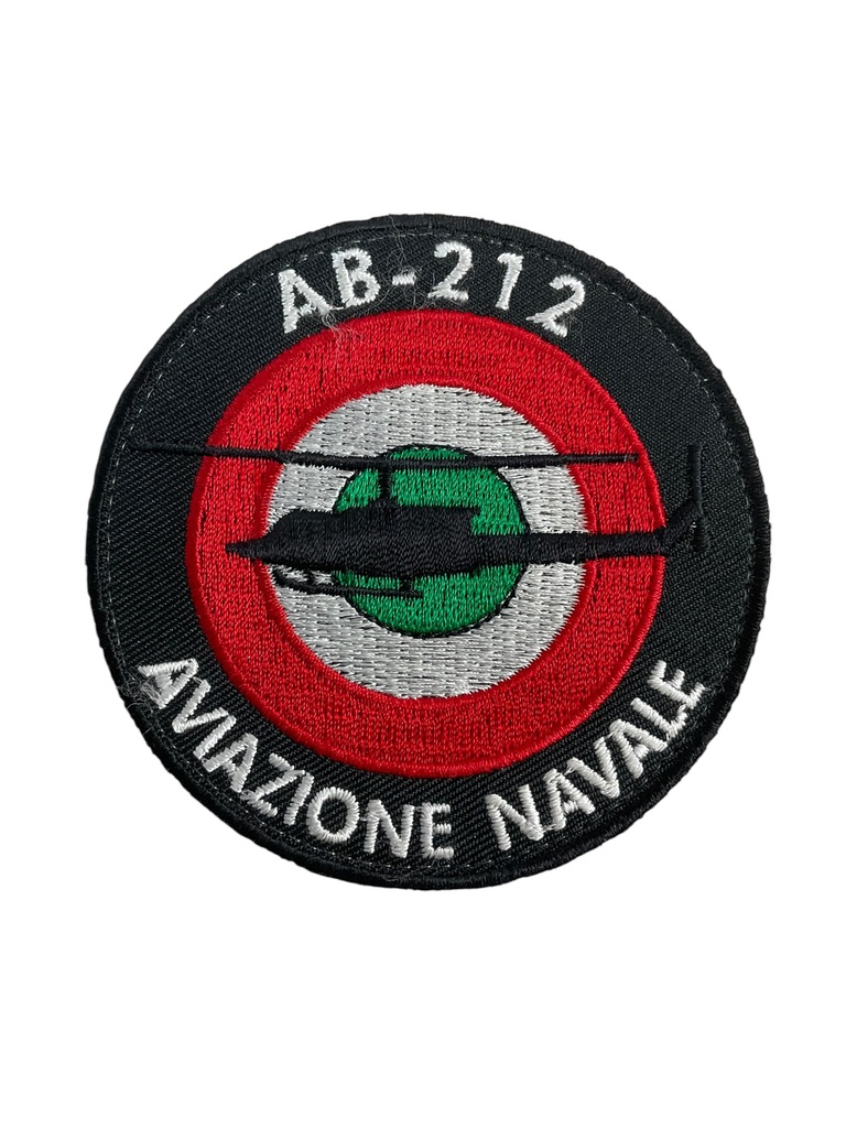 The Italian Navy Aviation AB-212 Patch is an embroidered insignia representing service with the Italian Naval Air Arm’s AB-212 helicopter squadrons. The AB-212, derived from the Bell UH-1N, has been operated by the Italian Navy since the late 1970s primarily for anti-submarine warfare, search and rescue, and transport missions. The patch typically features distinctive imagery associated with the AB-212, such as helicopter outlines, maritime motifs, or squadron identifiers, rendered in durable thread and cloth. These patches are worn on flight suits or uniforms to denote assignment to AB-212 units or participation in specific deployments or exercises. The design may vary slightly depending on the exact squadron or issuing period but generally adheres to Italian military insignia standards. This item is of interest to collectors of military aviation memorabilia, particularly those focusing on Italian or naval forces. Dimensions and fastening methods may vary by production run.