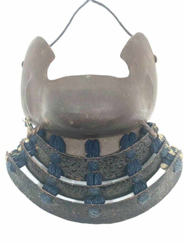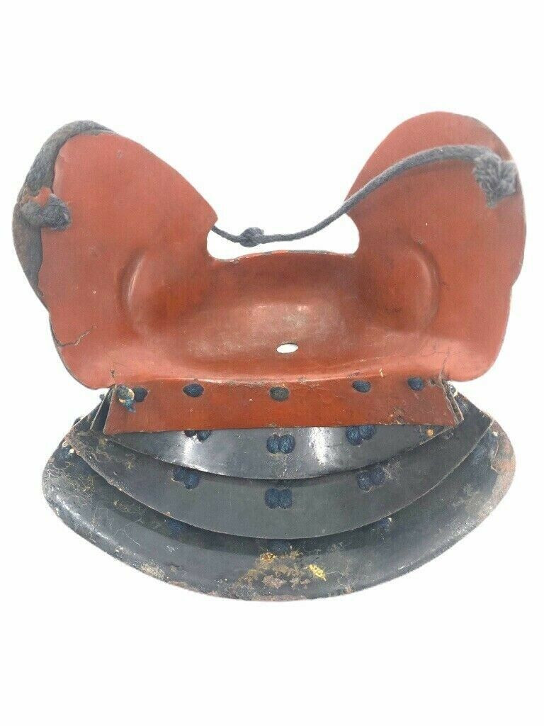 Japan Japanese Momonari Kabuto Helmet 1750-1800 with Hanpo Face Shield. A very nice set of helmet and face shield from the 1750-1800 era. There is some delamination on the lobster part of the helmet and the face shield as you can see from the pictures. The inside liner has some issues but that is honestly to be expected for a helmet that is over 200 years old. Nice vintage set that would look great on a mantle.