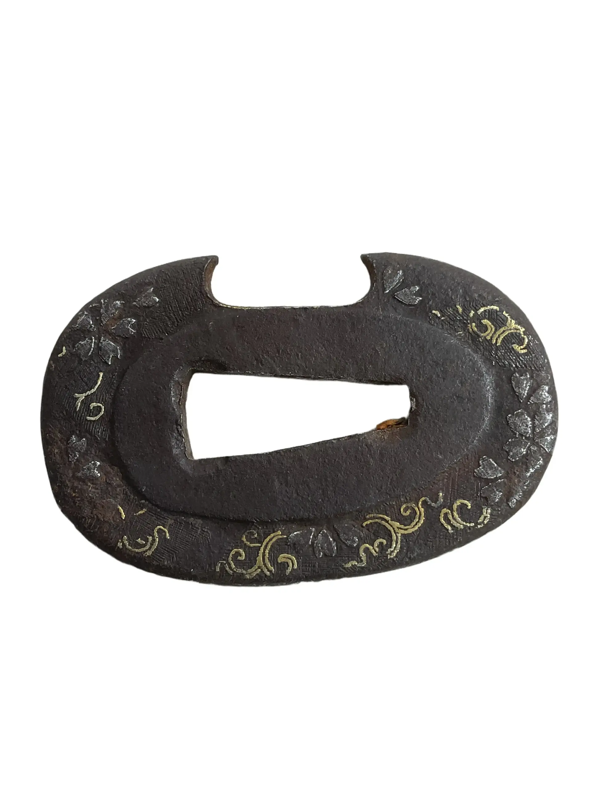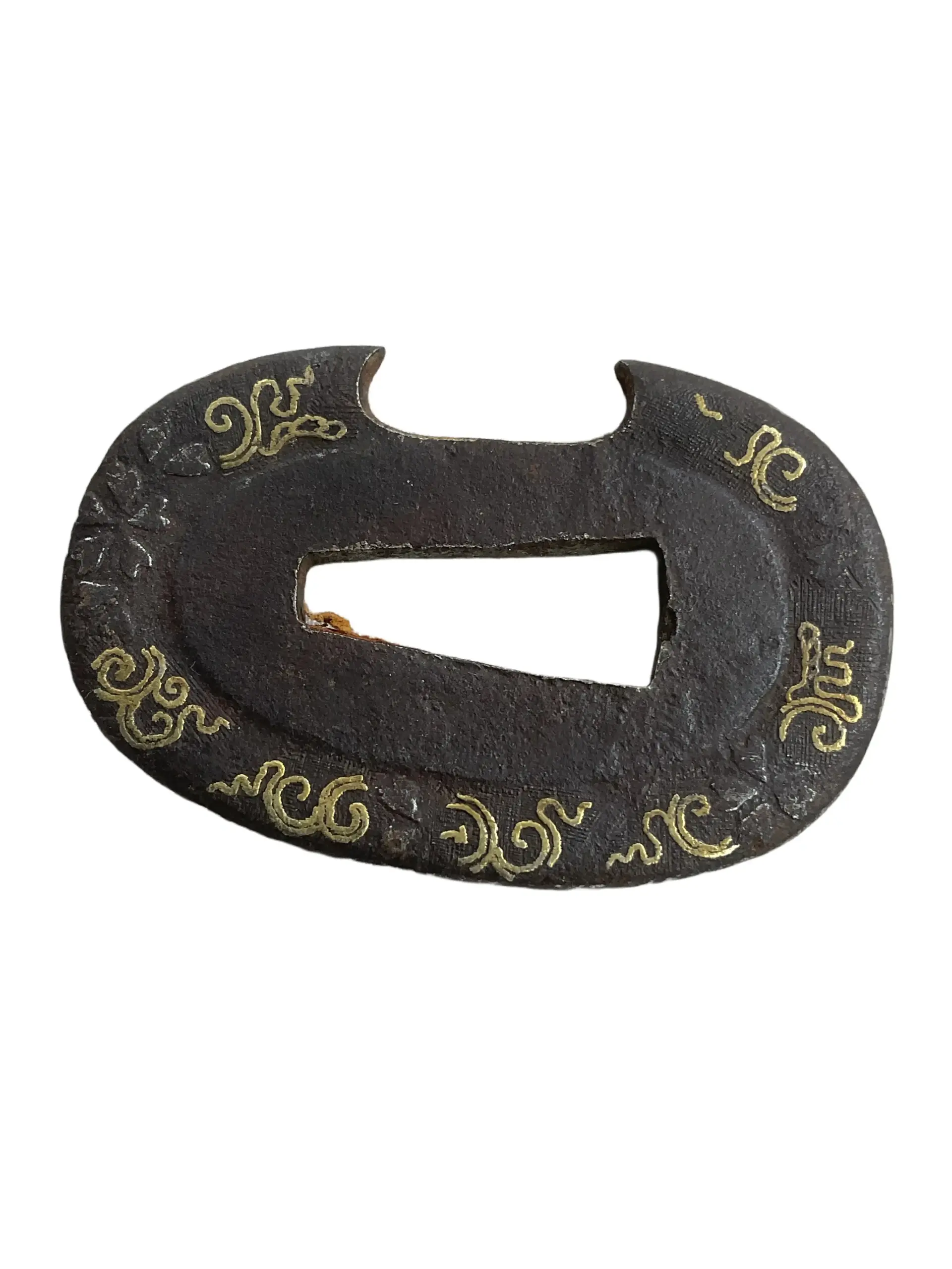 A Japanese Tanto Tsuba is a handguard designed specifically for the tanto, a traditional Japanese dagger. The tsuba serves as a protective element between the blade and the handle, enhancing both functionality and safety for the user. Typically crafted from iron, brass, or other metals, tanto tsuba feature varying shapes, sizes, and decorative techniques that reflect the period and region of their manufacture. Common motifs include natural elements, geometric patterns, or symbols associated with samurai culture. While tsuba for larger swords like katana and wakizashi are more widely recognized, tanto tsuba are generally smaller and more understated, but they often maintain similar construction standards and artistic qualities. Collectors and historians value tanto tsuba for their craftsmanship, historical significance, and role in the traditional martial culture of Japan. Each piece offers unique insight into the metallurgical and artistic practices prevalent during its period of production.