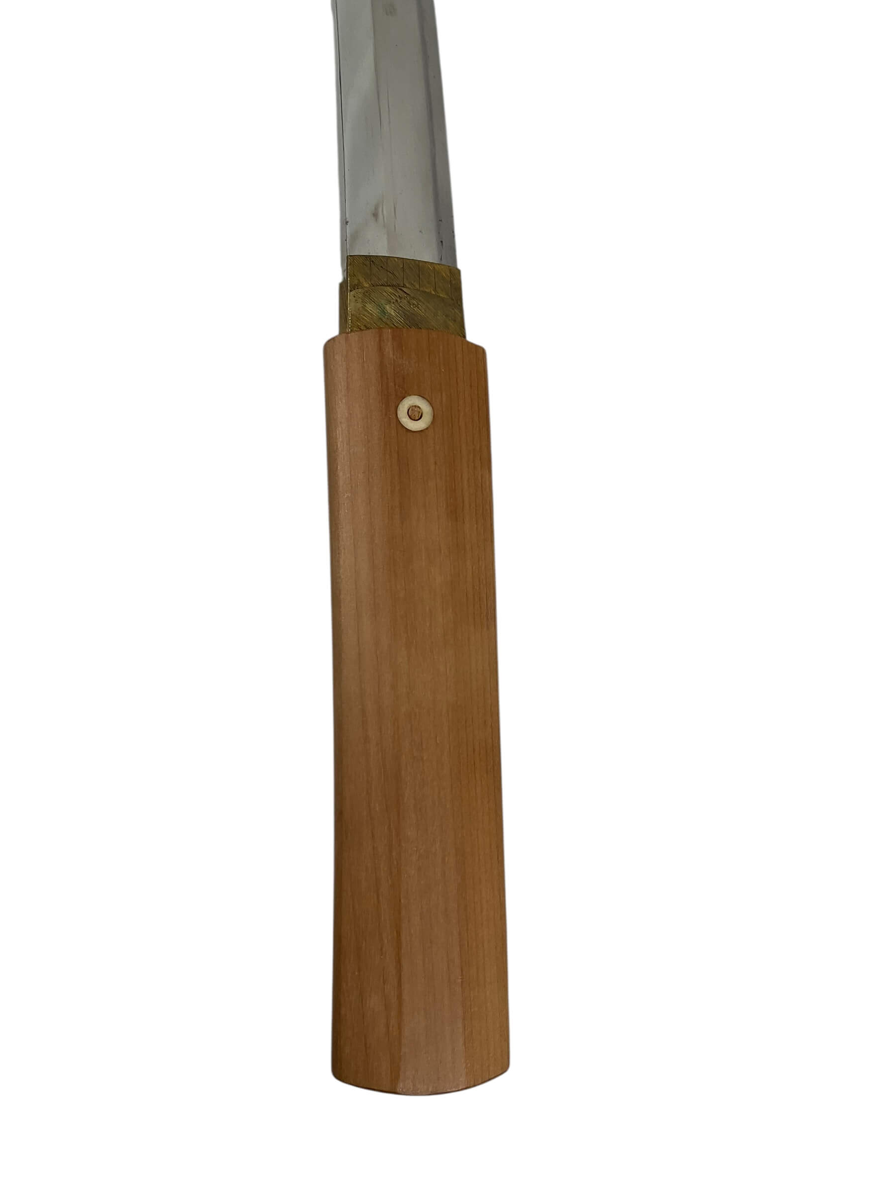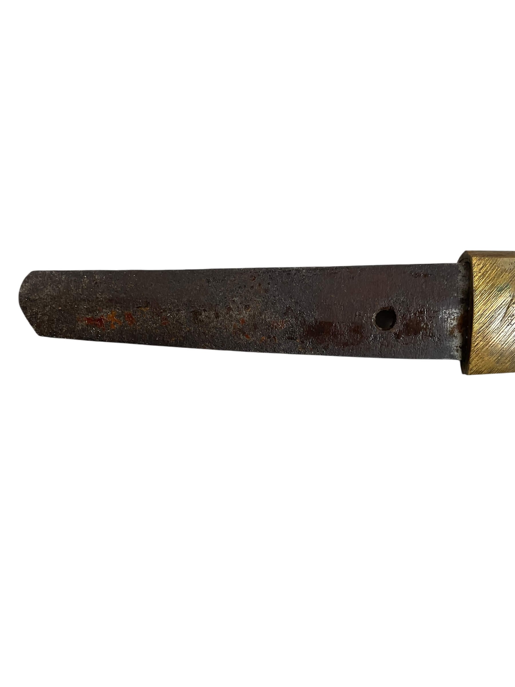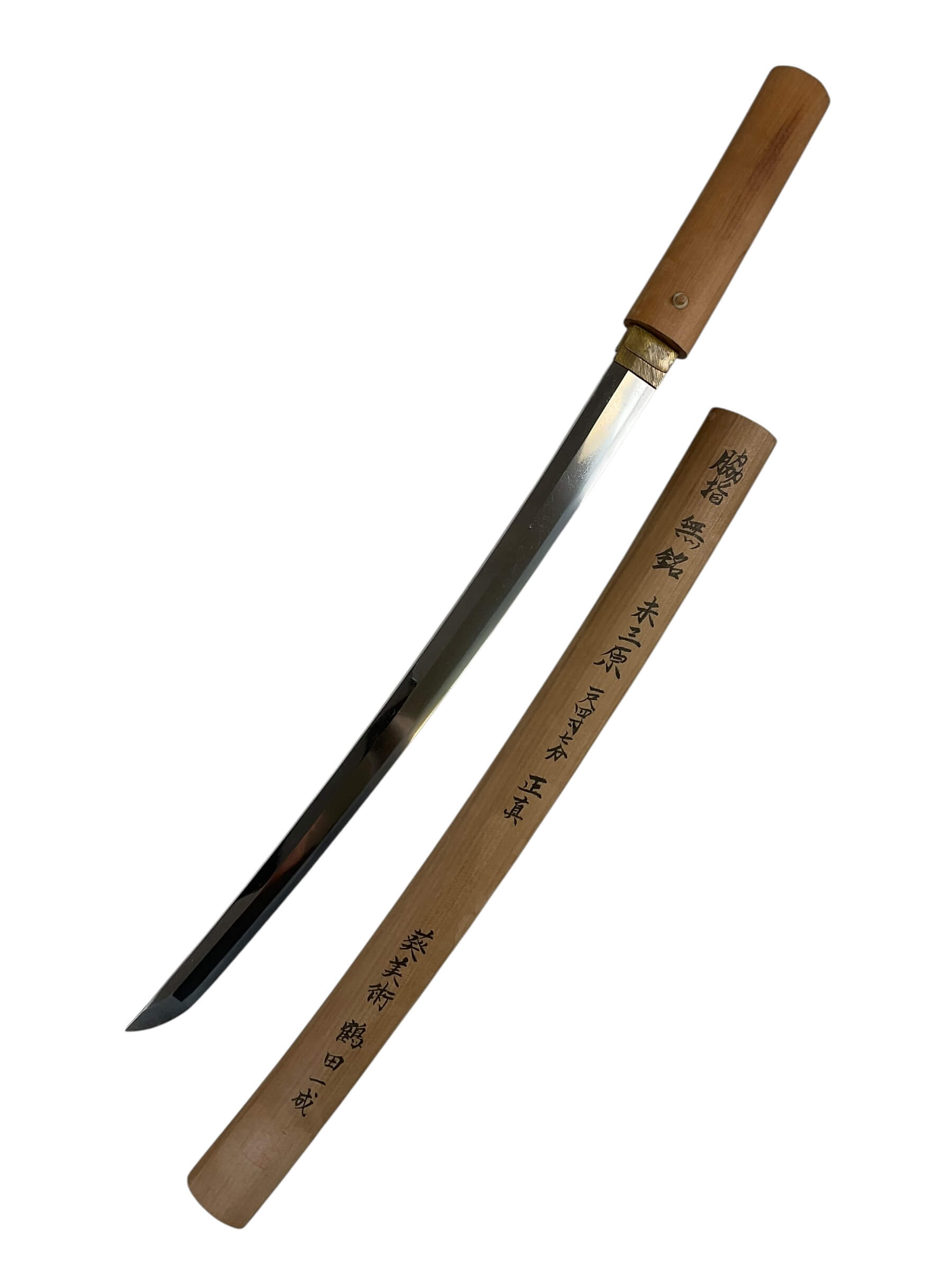 This Japanese Wakizashi Short Sword originates from the Muromachi period, a significant epoch in Japanese history spanning from the 14th to the 16th centuries. Known for its exceptional craftsmanship, the sword boasts a harmonious blend of functionality and aesthetic appeal. The blade is forged from tamahagane steel, highly prized for its purity and resilience. Its tempered edge is a testament to the blacksmith’s skill, embodying the spirit and discipline of the Samurai. The sword comes complete with papers, authenticating its provenance and certifying its quality. The hilt is intricately wrapped in traditional Japanese style, providing a secure grip, while the scabbard is crafted with equal finesse. This Wakizashi Short Sword is not just a weapon, but a work of art and a piece of history.