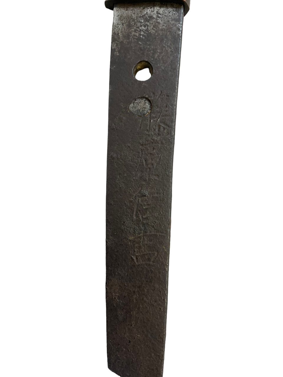 This exquisite Japanese Wakizashi short sword, circa 1368, offers a rare glimpse into the artistry and craftsmanship of ancient Japanese swordsmiths. Polished to a brilliant sheen, this blade exemplifies the enduring elegance and sharpness that the Wakizashi is renowned for. Signed by its maker, the sword carries a historical authenticity, though it comes without accompanying papers. Despite the absence of documentation, the sword’s immaculate condition and intricate details speak volumes about its storied past. Measuring shorter than the traditional Katana, the Wakizashi was historically worn by samurai as a companion blade, often symbolizing their honor and readiness. Whether displayed as an impressive artifact or appreciated by a collector, this polished Wakizashi is a testament to the sophistication and enduring legacy of Japanese martial heritage.