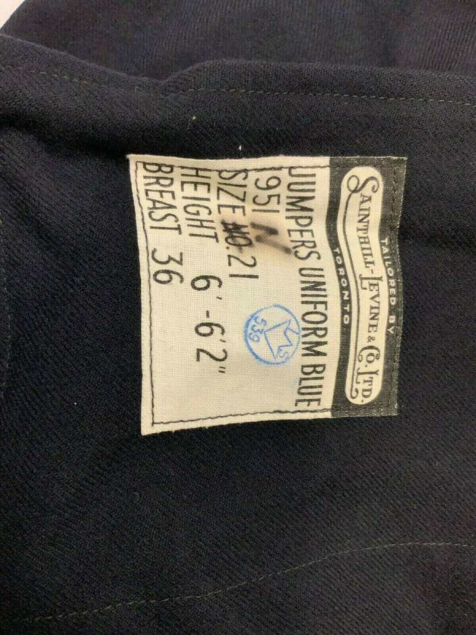 Korean War Canadian Navy RCN Blue Zip Front Jumper Size 21 Dated 1951
