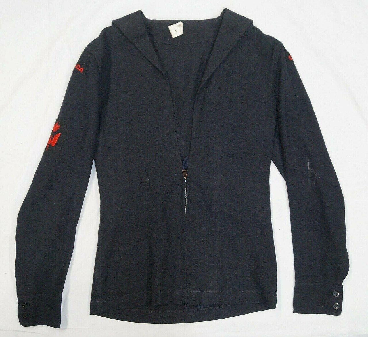 A used Korean War Canadian Navy RCN Radioman Blue Jumper 1951 Dated Size 6. Overall in excellent condition and comes complete with a zipper front and Radioman Trade insignia. Approx size is 36 inch chest. Great for display or reference. I ship all over the world. GST of 5% is applicable on all sales within Canada.