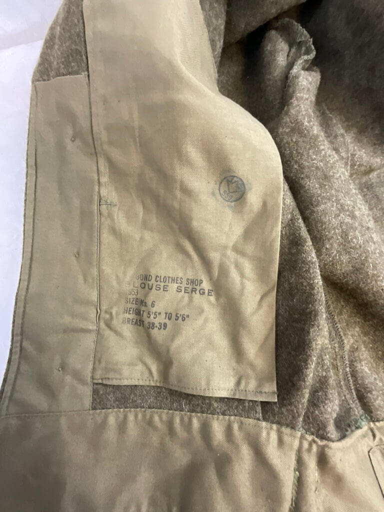 This vintage Korean War Era Canadian Army Wool Battledress Jacket is a rare find for military memorabilia collectors and history enthusiasts. Sized 6 38-39 short, it is designed for a comfortable fit while retaining its historical accuracy. The jacket is crafted from heavy-duty wool, offering robustness and insulation that the Canadian army battledress was known for. Its muted khaki colour is a nod to the military aesthetics of the era, while multiple utilitarian pockets add functionality. The jacket has been meticulously preserved, showcasing the craftsmanship and durability of wartime apparel. Despite its age, the jacket remains in excellent condition, a testament to its quality and the care taken in its preservation. This battledress jacket is more than a piece of vintage clothing; it’s a piece of history, offering a tangible connection to the past.