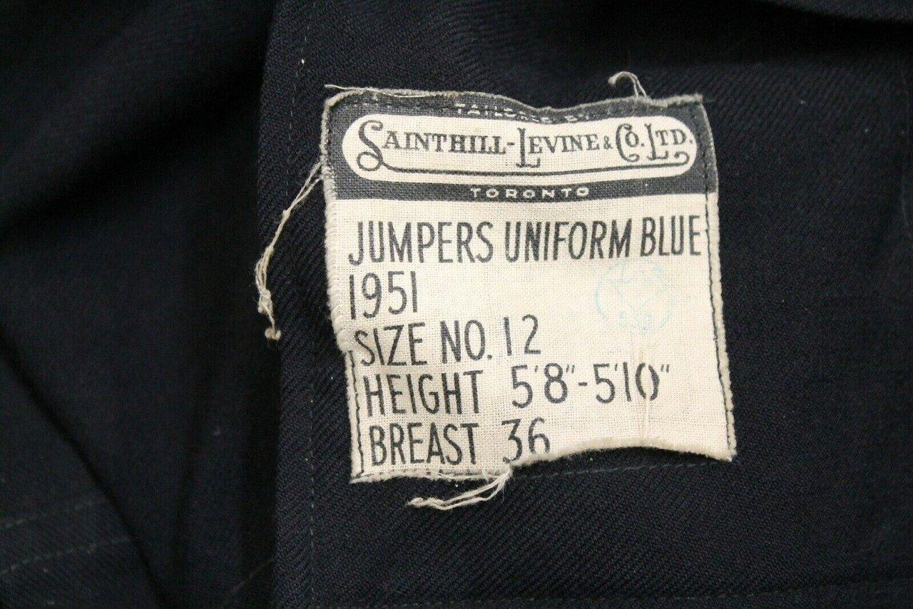A used Korean War Era Canadian Navy RCN Blue Jumper Jacket, good used condition, dated 1951, size 12, apx 5’11 height 38-40 chest