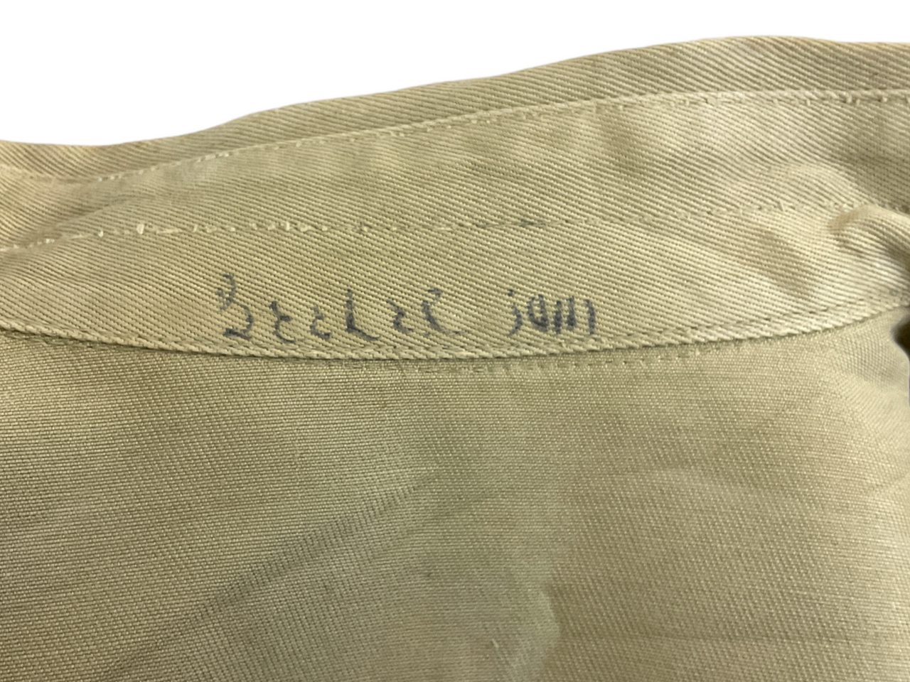 This remarkable artifact is a U.S. officer’s shirt from the Korean War, meticulously preserved and dated to 1951. The shirt bears a pristine 10th Army patch, a symbol of valor and the storied history of the division. What sets this piece apart is that it is personally named, adding a poignant touch of individual legacy to the uniform. Crafted from durable material typical of military issue at the time, this shirt is not just a piece of clothing but a testament to the resilience and dedication of those who served during this pivotal conflict. Perfect for collectors of military memorabilia, historians, or anyone interested in the rich tapestry of the Korean War, this named officer’s shirt offers a tangible, personal connection to the past. Whether displayed in a collection or examined for educational purposes, it underscores the human element of military history and the sacrifices made by service members.