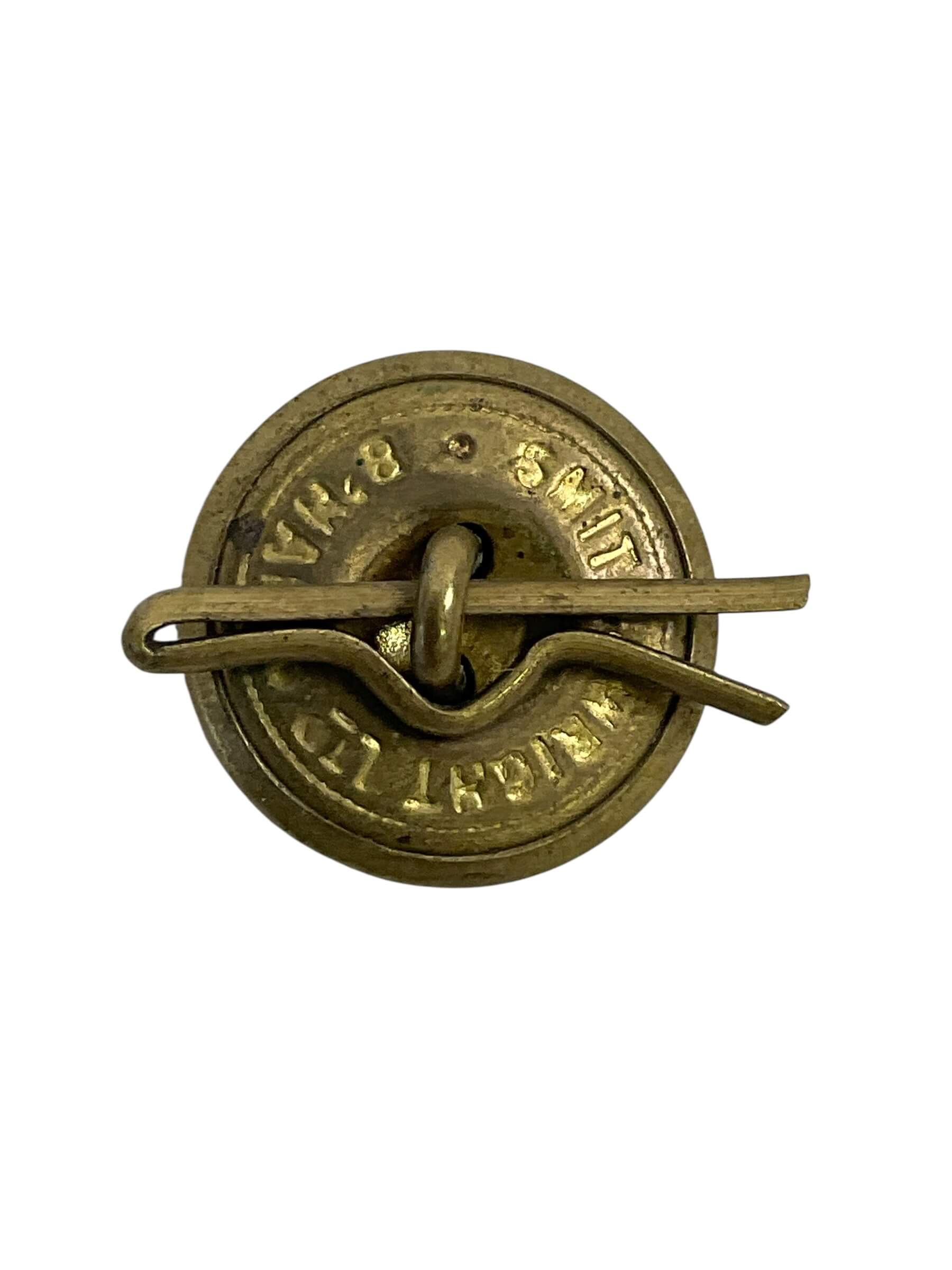 The North-West Mounted Police (NWMP) Medium Size Button is a historical uniform component associated with the Canadian NWMP, a precursor to the Royal Canadian Mounted Police. This button dates from the late 19th to early 20th century, a period during which the NWMP played a significant role in law enforcement across Canada’s northern and western territories. Constructed from brass, the button typically features the NWMP insignia, which may include a crown, beaver, or the organization’s initials, depending on the specific era of issue. Measuring approximately 22 to 24mm in diameter, this medium-sized button would have been used on tunics or greatcoats. The reverse side usually exhibits a maker’s mark or manufacturer stamping and a shank for sewing attachment. These buttons are frequently sought by collectors for their historical value and associations with Canada’s early law enforcement history. Condition, design details, and marking variations may vary based on period and maker.