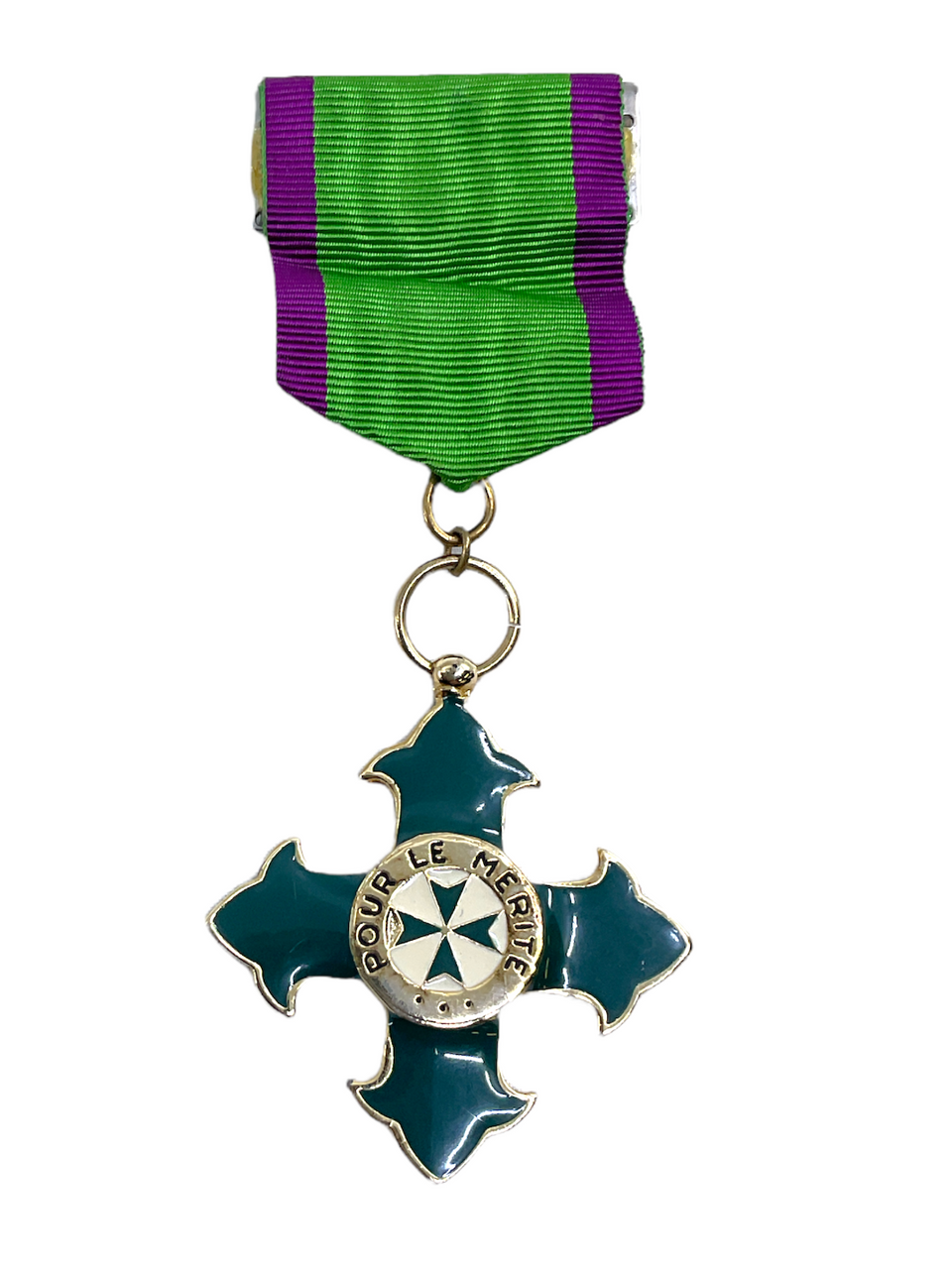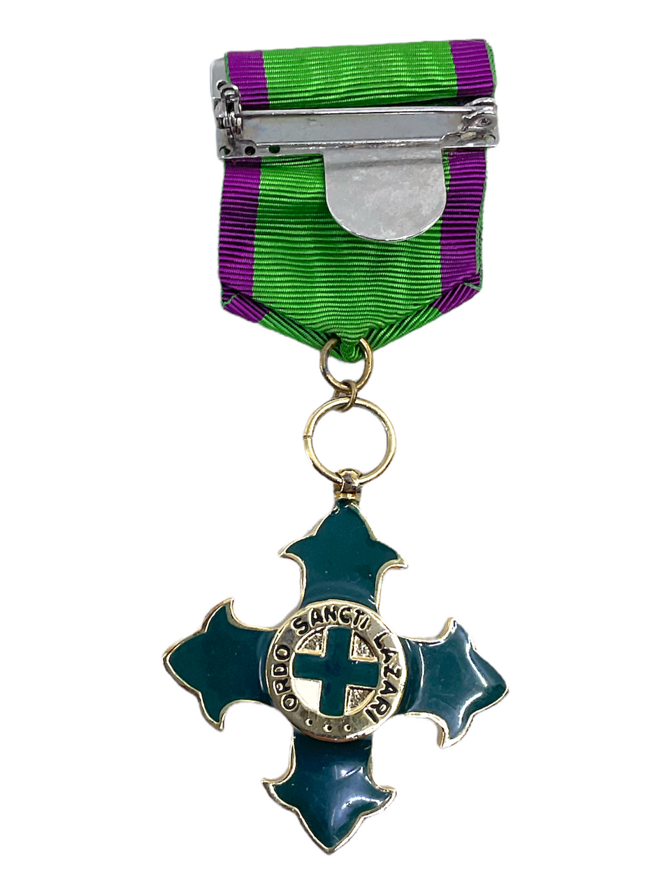 The Order of St Lazarus Full Size Medal with Ribbon & Suspension is a distinguished and elegant piece of insignia that represents the historic and charitable legacy of the Order of Saint Lazarus. Crafted with meticulous attention to detail, this full-size medal showcases the iconic cross of the order, often enameled in a rich shade of green, symbolizing hope and renewal. The accompanying ribbon, typically in vibrant hues, complements the medal, allowing it to be proudly displayed on formal occasions. The suspension mechanism ensures the medal hangs perfectly, highlighting its significance and the honor it conveys. This medal is not only a symbol of membership and recognition within the esteemed Order of St Lazarus but also a testament to the values of service, loyalty, and commitment to humanitarian causes. Perfect for collectors, historians, or members of the order, it stands as a timeless emblem of noble tradition and duty.
