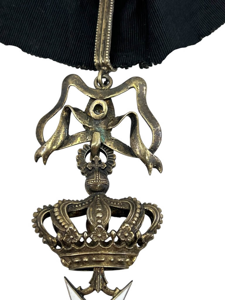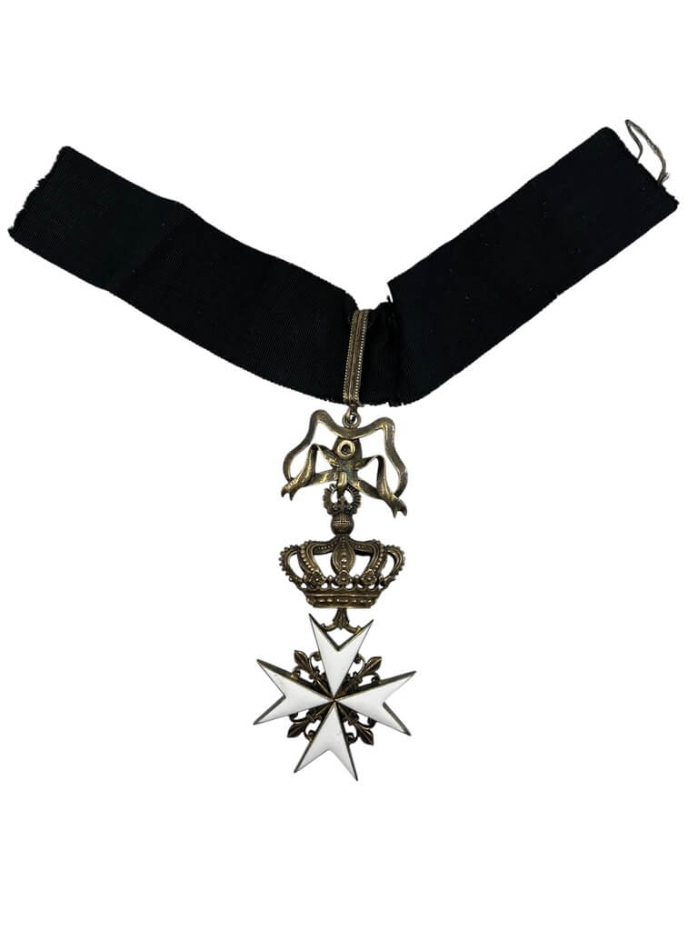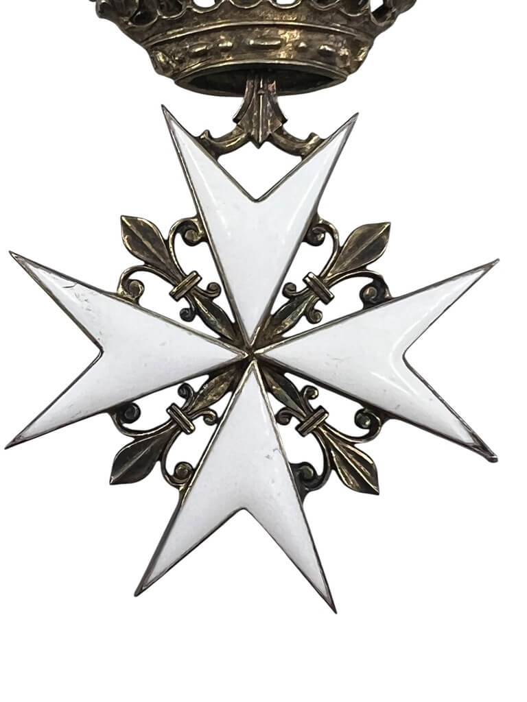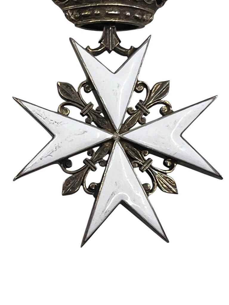The Order of the Knights of Malta Magisterial Commander Cross is a decoration historically associated with the Sovereign Military Order of Malta, a Catholic lay religious order with origins in the 11th century. This cross is typically awarded to recognize service or merit within the organization and signifies the rank of Commander. Characteristically, the cross features a white-enameled eight-pointed Maltese cross, often edged in silver or gold, and suspended from a ribbon. The design may include central or corner embellishments such as crowns, shields, or the order’s insignia, depending on the period of issue. The Magisterial Commander Cross reflects the traditional iconography and hierarchy of the Knights of Malta, an order actively involved in humanitarian and charitable activities throughout its history. Items of this type are of interest to collectors of military, religious, and chivalric memorabilia, noting their ceremonial and symbolic importance within European orders of knighthood.